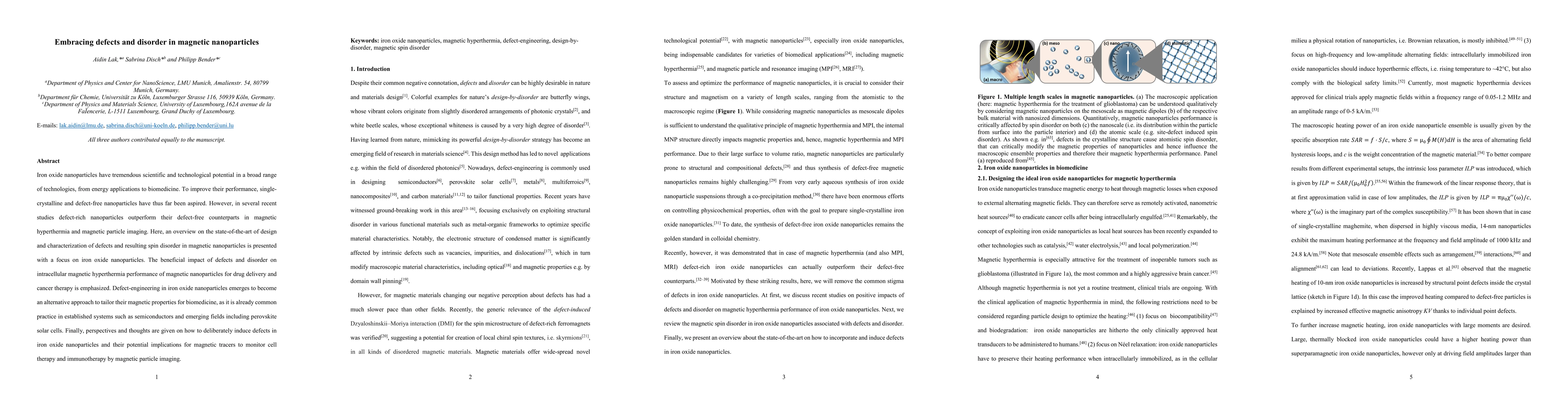 This paper explores how defects and disorder in iron oxide nanoparticles can enhance their performance in biomedical applications, particularly in magnetic hyperthermia and magnetic particle imaging. It highlights the emerging strategy of defect-engineering to tailor magnetic properties, suggesting potential benefits for drug delivery and cancer therapy.