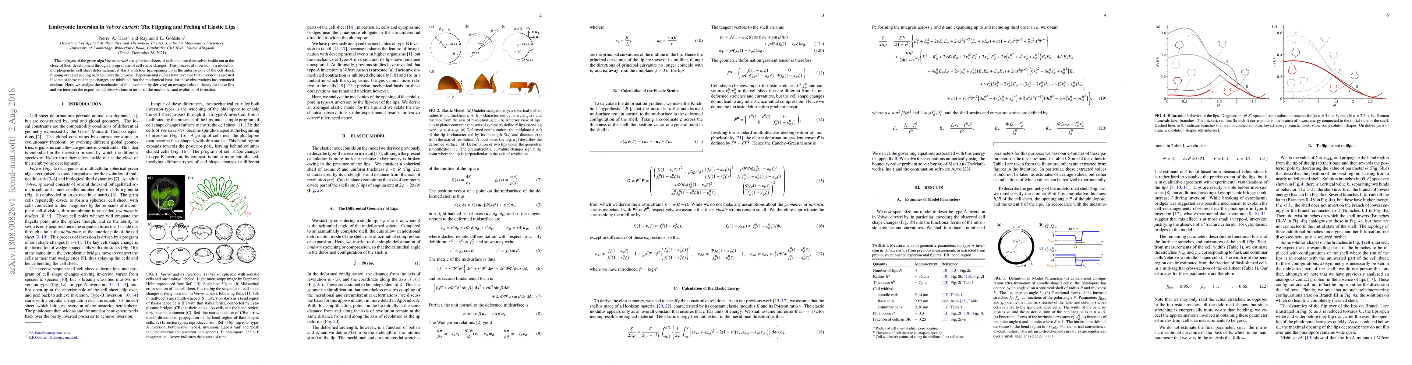 This paper investigates the embryonic inversion process in the green alga $Volvox~carteri$, where spherical cell sheets undergo a series of shape changes to invert themselves. The authors develop an elastic theory to understand the mechanics behind the inversion, revealing how the deformation of "elastic lips" drives this process and explaining how inhibition of specific cell shape changes can arrest inversion.