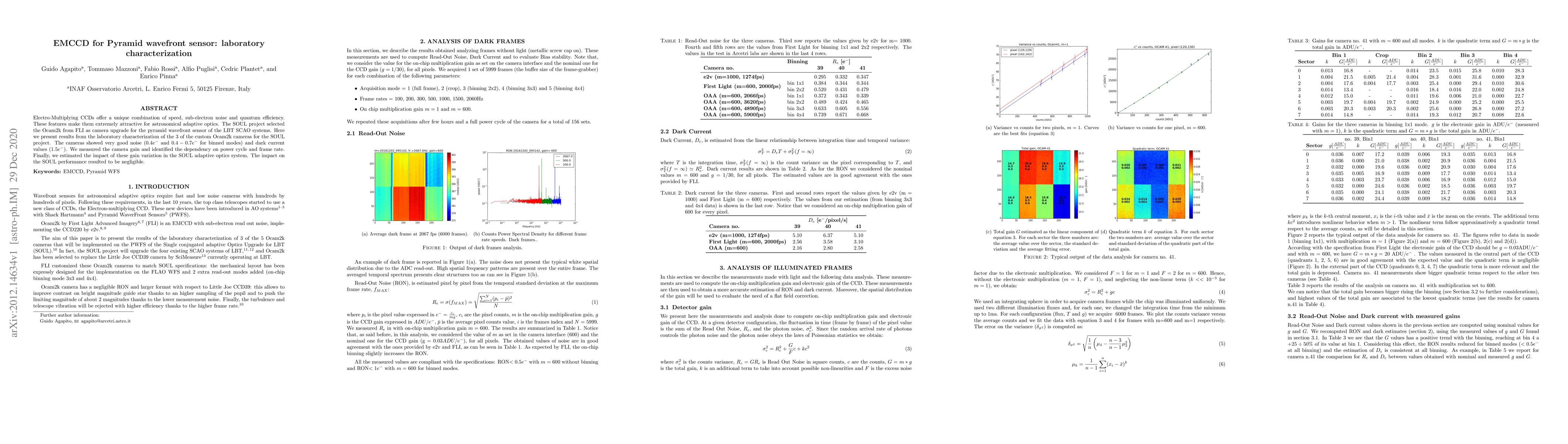 The paper characterizes custom Ocam2k EMCCD cameras for the SOUL project's pyramid wavefront sensor, finding low noise and dark current, and negligible impact on the SOUL adaptive optics system performance despite gain variations.