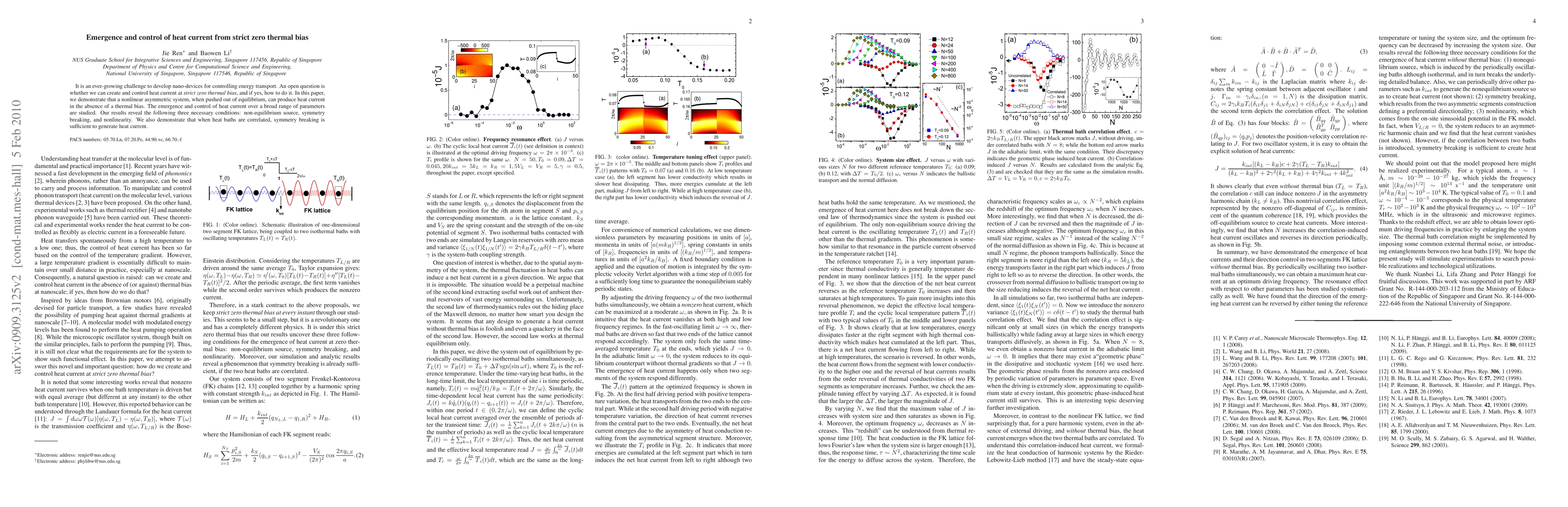 It is an ever-growing challenge to develop nano-devices for controlling energy transport. An open question is whether we can create and control heat current at {\it strict zero thermal bias}, and if yes, how to do it. In this paper, we demonstrate that a nonlinear asymmetric system, when pushed out of equilibrium, can produce heat current in the absence of a thermal bias. The emergence and control of heat current over a broad range of parameters are studied. Our results reveal the following three necessary conditions: non-equilibrium source, symmetry breaking, and nonlinearity. We also demonstrate that when heat baths are correlated, symmetry breaking is sufficient to generate heat current.