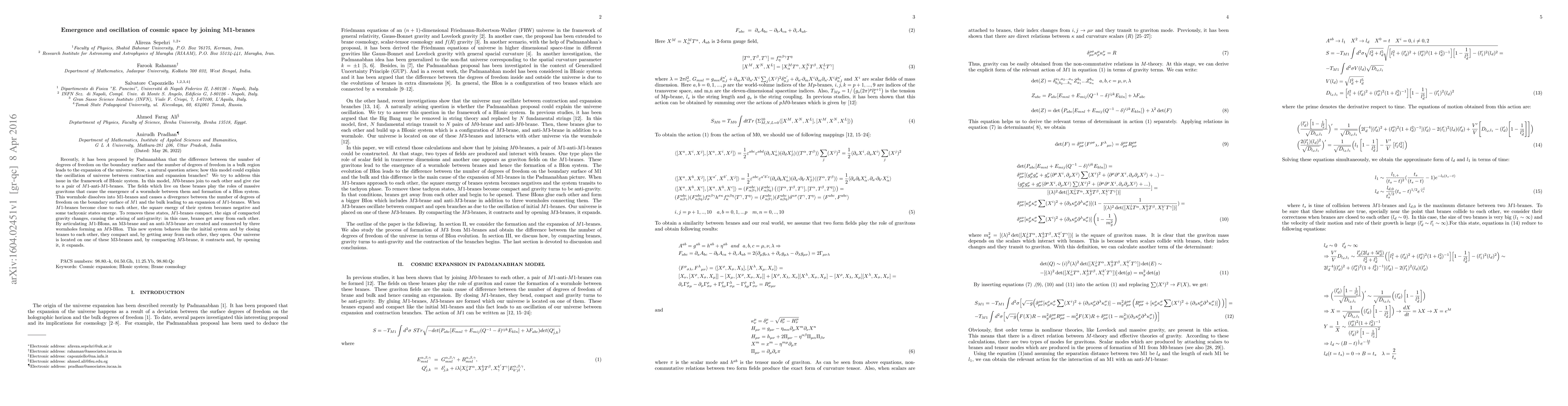 Recently, it has been proposed by Padmanabhan that the difference between the number of degrees of freedom on the boundary surface and the number of degrees of freedom in a bulk region leads to the expansion of the universe. Now, a natural question arises, how this model could explain the oscillation of universe between contraction and expansion branches? We try to address this issue in the framework of BIonic system. In this model, $M0$-branes join to each other and give rise to a pair of $M1$-anti-$M1$-branes. The fields which live on these branes play the roles of massive gravitons that cause the emergence of a wormhole between them and formation of a BIon system. This wormhole dissolves into M1-branes and causes a divergence between the number of degrees of freedom on the boundary surface of $M1$ and the bulk leading to an expansion of $M1$-branes. When $M1$-branes become close to each other, the square energy of their system becomes negative and some tachyonic states emerge. To removes these states, $M1$-branes compact, the sign of compacted gravity changes, causing the arising of anti-gravity: in this case, branes get away from each other. By articulating $M1$-BIons, an M3-brane and an anti-$M3$-brane are created and connected by three wormholes forming an $M3$-BIon. This new system behaves like the initial system and by closing branes to each other, they compact and, by getting away from each other, they open. Our universe is located on one of these M3-branes and, by compacting $M3$-brane, it contracts and, by opening it, it expands.