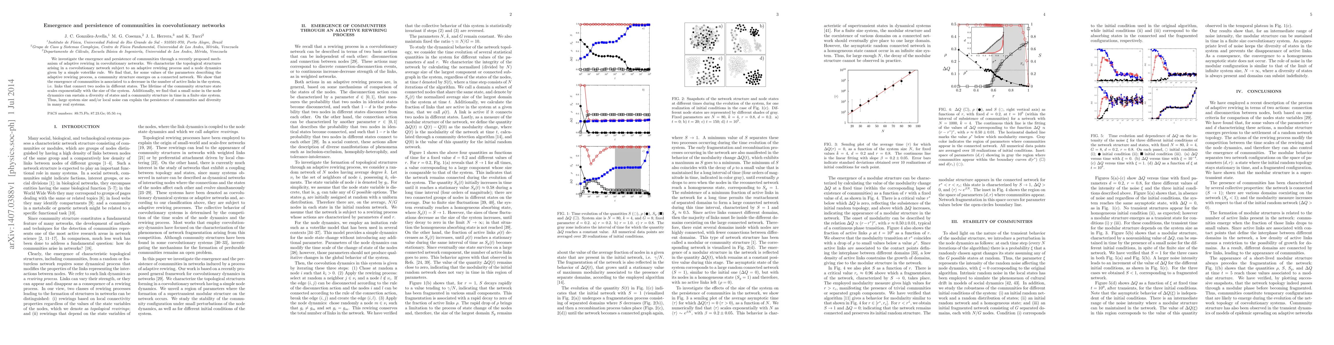 This research examines how adaptive rewiring and simple node dynamics can lead to the emergence and persistence of communities in coevolutionary networks. It reveals that communities form when there is a reduction in inter-community links and their stability scales exponentially with network size, while small noise enhances diversity and community longevity.
