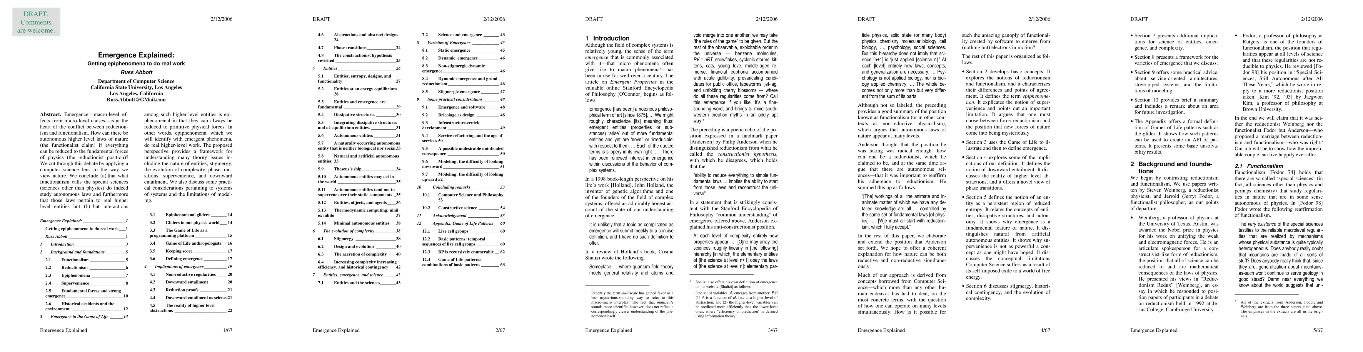 Emergence (macro-level effects from micro-level causes) is at the heart of the conflict between reductionism and functionalism. How can there be autonomous higher level laws of nature (the functionalist claim) if everything can be reduced to the fundamental forces of physics (the reductionist position)? We cut through this debate by applying a computer science lens to the way we view nature. We conclude (a) that what functionalism calls the special sciences (sciences other than physics) do indeed study autonomous laws and furthermore that those laws pertain to real higher level entities but (b) that interactions among such higher-level entities is epiphenomenal in that they can always be reduced to primitive physical forces. In other words, epiphenomena, which we will identify with emergent phenomena, do real higher-level work. The proposed perspective provides a framework for understanding many thorny issues including the nature of entities, stigmergy, the evolution of complexity, phase transitions, supervenience, and downward entailment. We also discuss some practical considerations pertaining to systems of systems and the limitations of modeling.