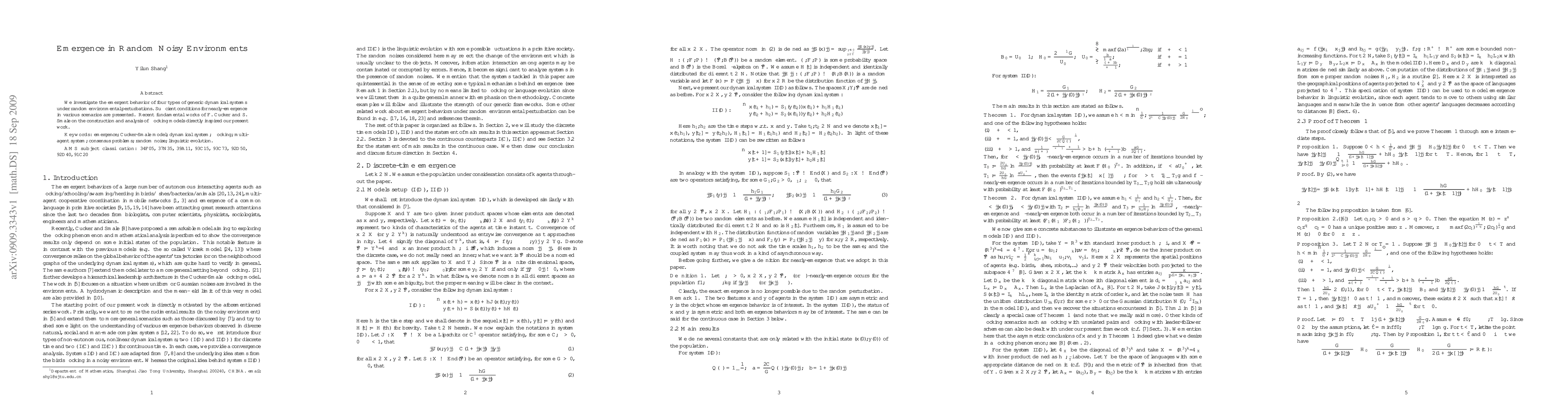 We investigate the emergent behavior of four types of generic dynamical systems under random environmental perturbations. Sufficient conditions for nearly-emergence in various scenarios are presented. Recent fundamental works of F. Cucker and S. Smale on the construction and analysis of flocking models directly inspired our present work.