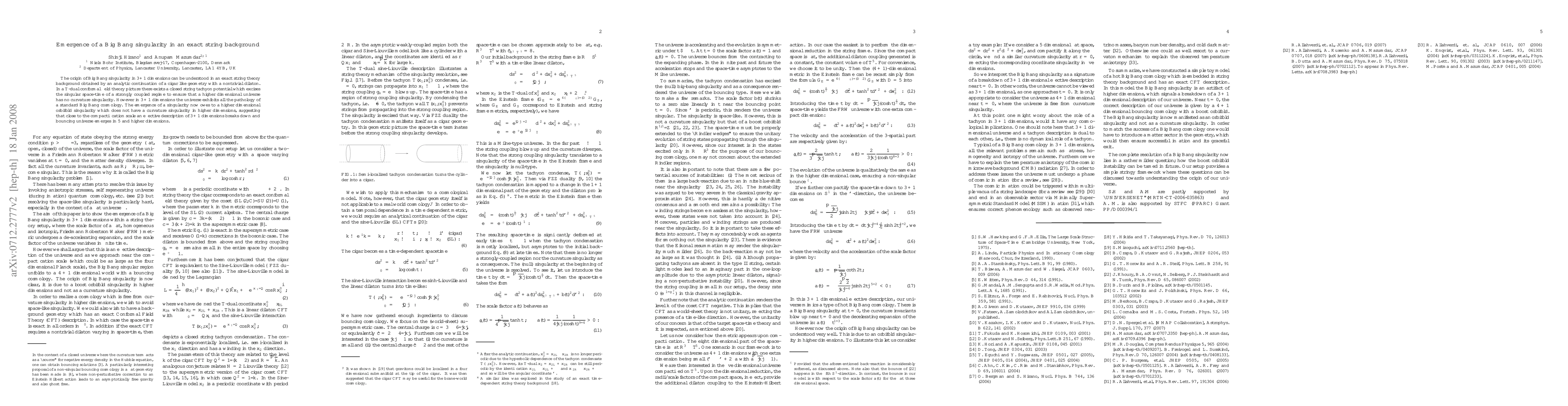 The origin of Big Bang singularity in 3+1 dimensions can be understood in an exact string theory background obtained by an analytic continuation of a cigar like geometry with a nontrivial dilaton. In a T-dual conformal field theory picture there exists a closed string tachyon potential which excises the singular space-time of a strongly coupled regime to ensure that a higher dimensional universe has no curvature singularity. However in 3+1 dimensions the universe exhibits all the pathology of a standard Big Bang cosmology. The emergence of a singularity now owes to a higher dimensional orbifold singularity which does not have a curvature singularity in higher dimensions, suggesting that close to the compactification scale an effective description of 3+1 dimensions breaks down and bouncing universe emerges in 5 and higher dimensions.