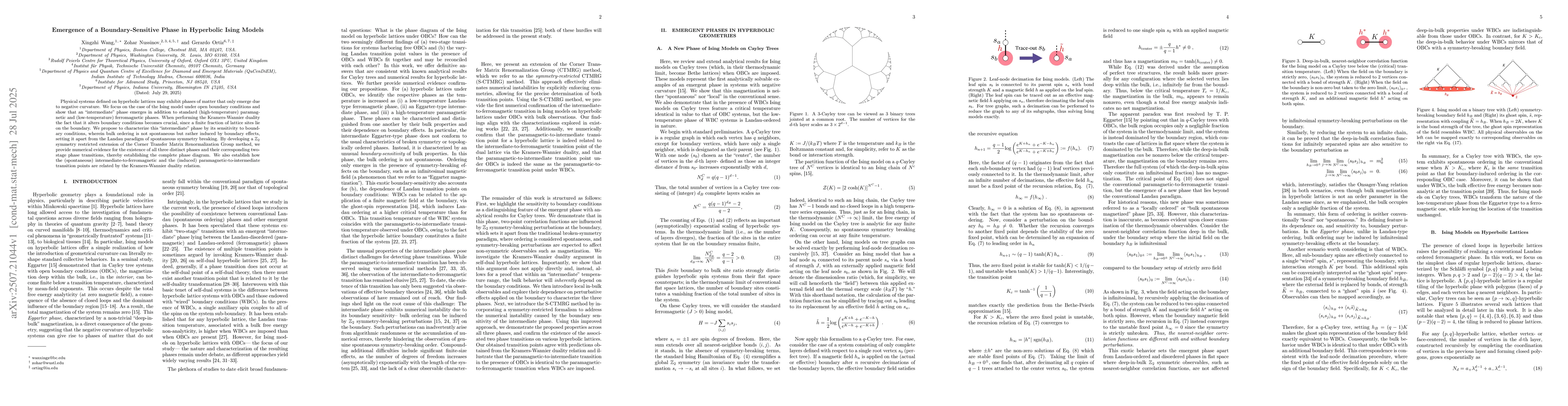 Physical systems defined on hyperbolic lattices may exhibit phases of matter that only emerge due to negative curvature. We focus on the case of the Ising model under open boundary conditions and show that an ``intermediate'' phase emerges in addition to standard (high-temperature) paramagnetic and (low-temperature) ferromagnetic phases. When performing the Kramers-Wannier duality the fact that it alters boundary conditions becomes crucial, since a finite fraction of lattice sites lie on the boundary. We propose to characterize this ``intermediate'' phase by its sensitivity to boundary conditions, wherein bulk ordering is not spontaneous but rather induced by boundary effects, setting it apart from the Landau paradigm of spontaneous symmetry breaking. By developing a $\mathbb{Z}_2$ symmetry restricted extension of the Corner Transfer Matrix Renormalization Group method, we provide numerical evidence for the existence of all three distinct phases and their corresponding two-stage phase transitions, thereby establishing the complete phase diagram. We also establish how the (spontaneous) intermediate-to-ferromagnetic and the (induced) paramagnetic-to-intermediate transition points are related by the Kramers-Wannier duality relation.
