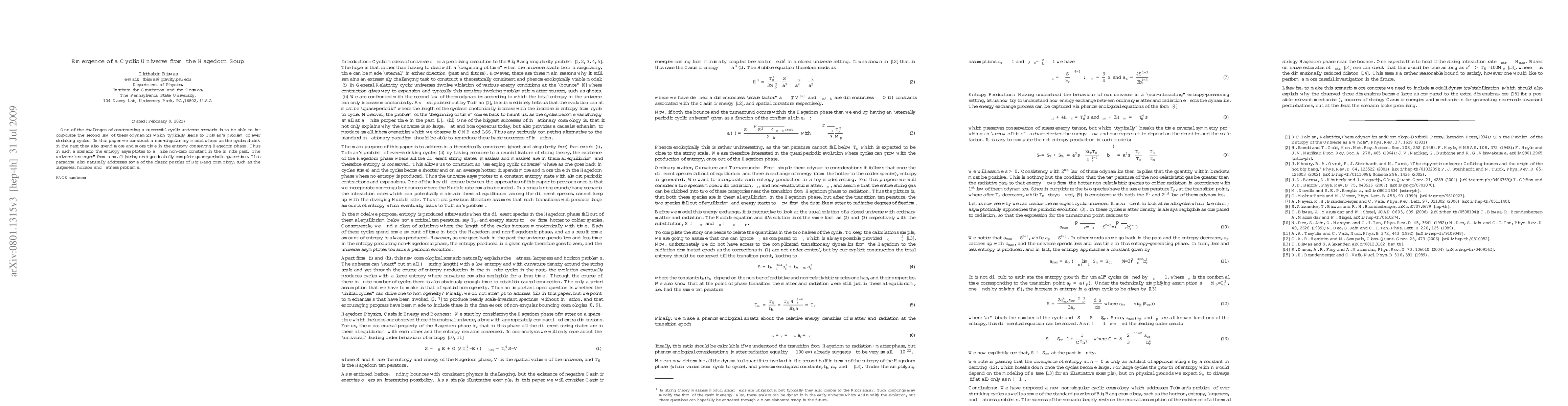 One of the challenges of constructing a successful cyclic universe scenario is to be able to incorporate the second law of thermodynamics which typically leads to Tolman's problem of ever shrinking cycles. In this paper we construct a non-singular toy model where as the cycles shrink in the past they also spend more and more time in the entropy conserving Hagedorn phase. Thus in such a scenario the entropy asymptotes to a finite non-zero constant in the infinite past. The universe ``emerges'' from a small (string size) geodesically complete quasi-periodic space-time. This paradigm also naturally addresses some of the classic puzzles of Big Bang cosmology, such as the largeness, horizon and flatness problems.