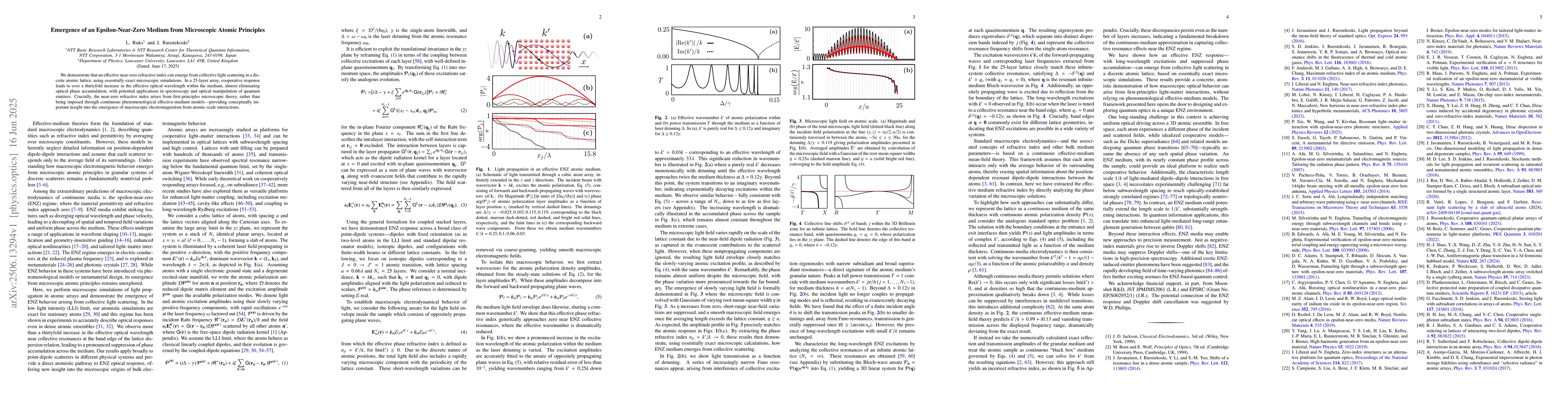 We demonstrate that an effective near-zero refractive index can emerge from collective light scattering in a discrete atomic lattice, using essentially exact microscopic simulations. In a 25-layer array, cooperative response leads to over a thirtyfold increase in the effective optical wavelength within the medium, almost eliminating optical phase accumulation, with potential applications in spectroscopy and optical manipulation of quantum emitters. Crucially, the near-zero refractive index arises from first-principles microscopic theory, rather than being imposed through continuous phenomenological effective-medium model - providing conceptually important insight into the emergence of macroscopic electromagnetism from atomic-scale interactions.