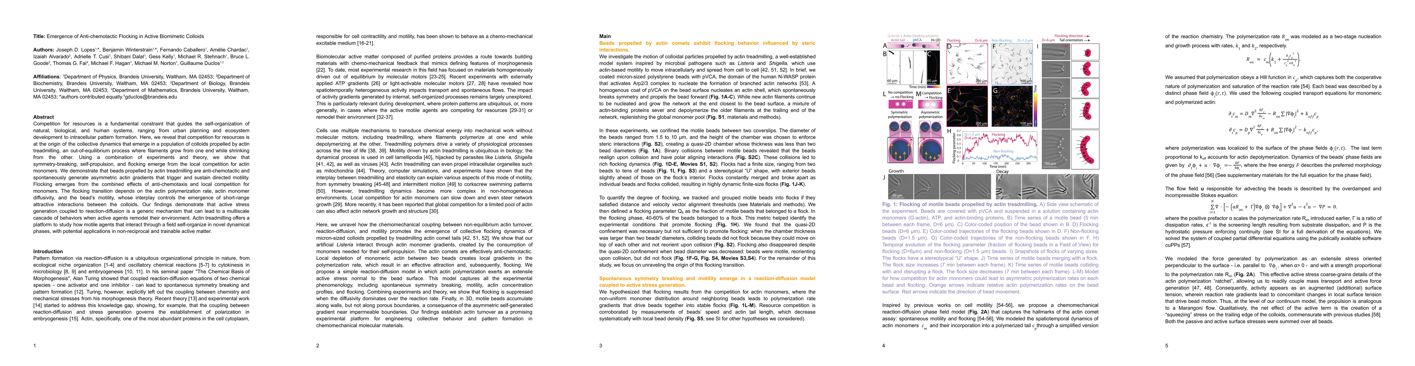 Research reveals that competition for resources leads to anti-chemotactic flocking in active biomimetic colloids propelled by actin treadmilling, a process where filaments grow and shrink in opposite directions.