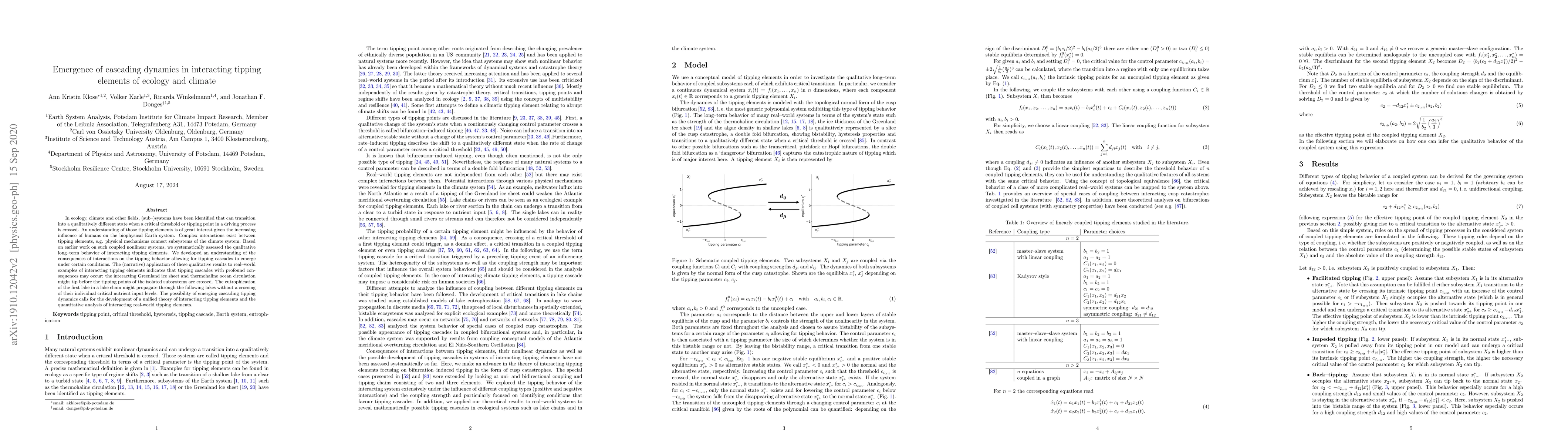 This paper investigates the interactions between tipping elements in ecology and climate, revealing that complex interactions can lead to cascading dynamics where one tipping event triggers subsequent ones, potentially before individual thresholds are reached. The study emphasizes the need for a unified theory to quantitatively analyze these interactions and their real-world implications.