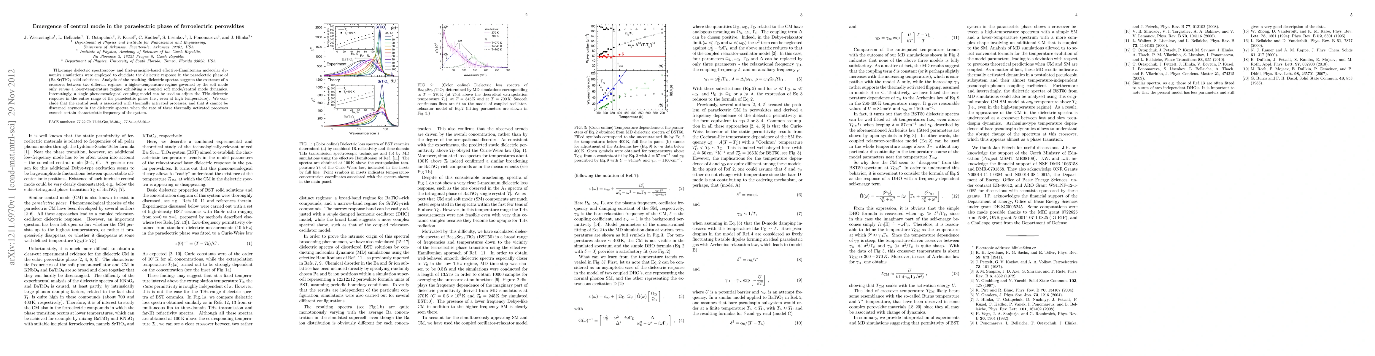 THz-range dielectric spectroscopy and first-principle-based effective-Hamiltonian molecular dynamics simulations were employed to elucidate the dielectric response in the paraelectric phase of (Ba,Sr)TiO3 solid solutions. Analysis of the resulting dielectric spectra suggests the existence of a crossover between two different regimes: a higher-temperature regime governed by the soft mode only versus a lower-temperature regime exhibiting a coupled soft mode/central mode dynamics. Interestingly, a single phenomenological coupling model can be used to adjust the THz dielectric response in the entire range of the paraelectric phase (i.e., even at high temperature). We conclude that the central peak is associated with thermally activated processes, and that it cannot be discerned anymore in the dielectric spectra when the rate of these thermally activated processes exceeds certain characteristic frequency of the system.
