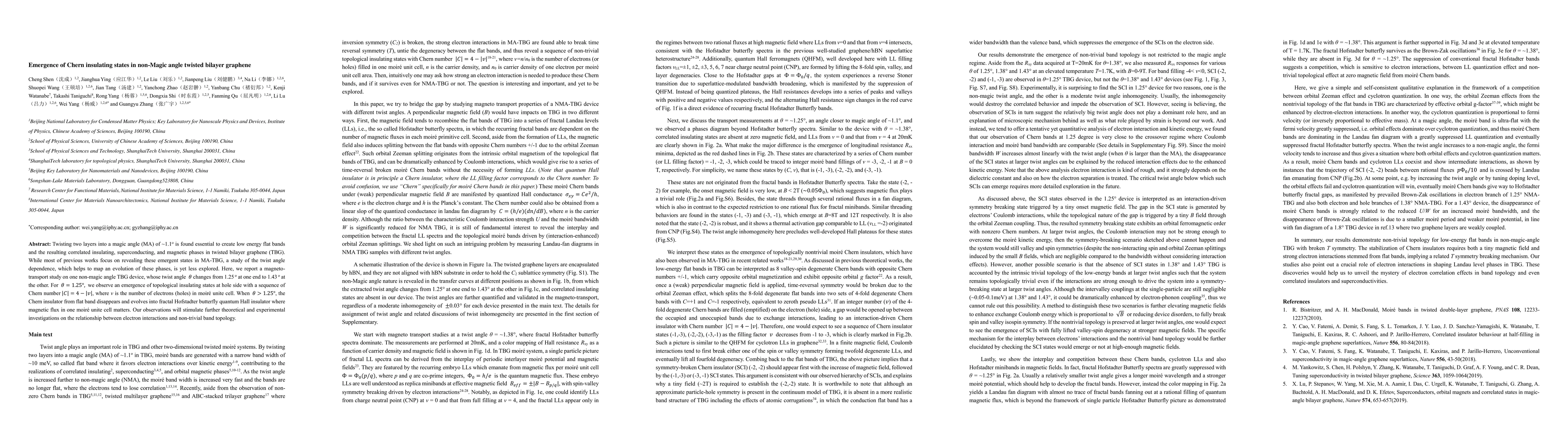 This study investigates the magneto-transport properties of non-magic angle twisted bilayer graphene, finding topological insulating states at a twist angle of 1.25° with Chern number |C|=4-|v|. As the twist angle increases, these states evolve into a fractal Hofstadter butterfly quantum Hall insulator, highlighting the complex interplay between electron interactions and band topology.