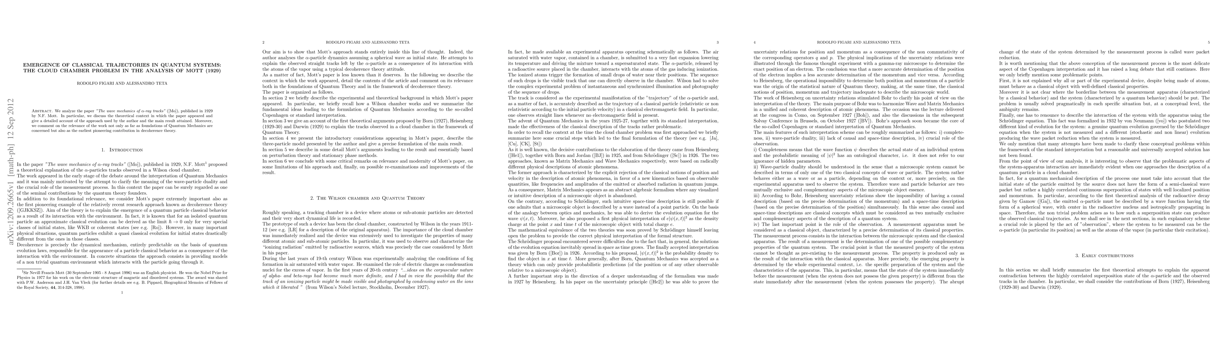 We analyze the paper "The wave mechanics of $\alpha$-ray tracks" (Mott, 1929), published in 1929 by N.F. Mott. In particular, we discuss the theoretical context in which the paper appeared and give a detailed account of the approach used by the author and the main result attained. Moreover, we comment on the relevance of the work not only as far as foundations of Quantum Mechanics are concerned but also as the earliest pioneering contribution in decoherence theory.