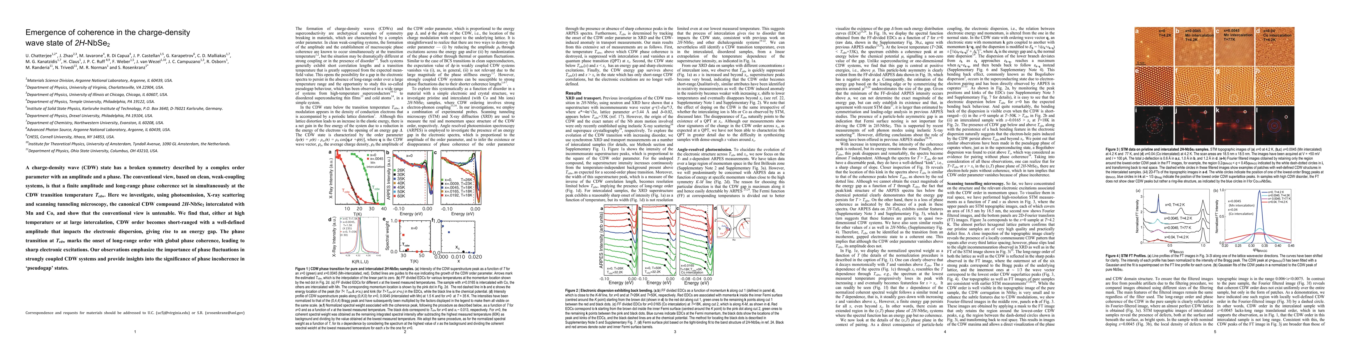 Researchers investigate charge-density wave (CDW) state in 2H-NbSe$_2$ with Mn and Co intercalation, finding that phase coherence sets in at the transition temperature, leading to a well-defined amplitude and energy gap.