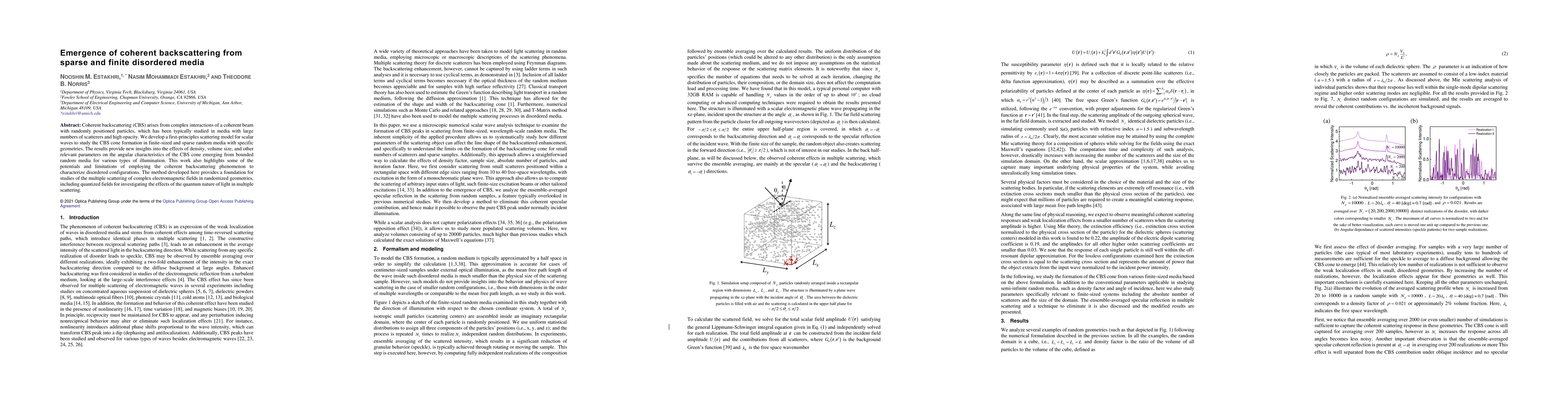 Coherent backscattering (CBS) arises from complex interactions of a coherent beam with randomly positioned particles, which has been typically studied in media with large numbers of scatterers and high opacity. We develop a first-principles scattering model for scalar waves to study the CBS cone formation in finite-sized and sparse random media with specific geometries. The results provide new insights into the effects of density, volume size, and other relevant parameters on the angular characteristics of the CBS cone emerging from bounded random media for various types of illumination. This work also highlights some of the potentials and limitations of employing the coherent backscattering phenomenon to characterize disordered configurations. The method developed here provides a foundation for studies of the multiple scattering of complex electromagnetic fields in randomized geometries, including quantized fields for investigating the effects of the quantum nature of light in multiple scattering.