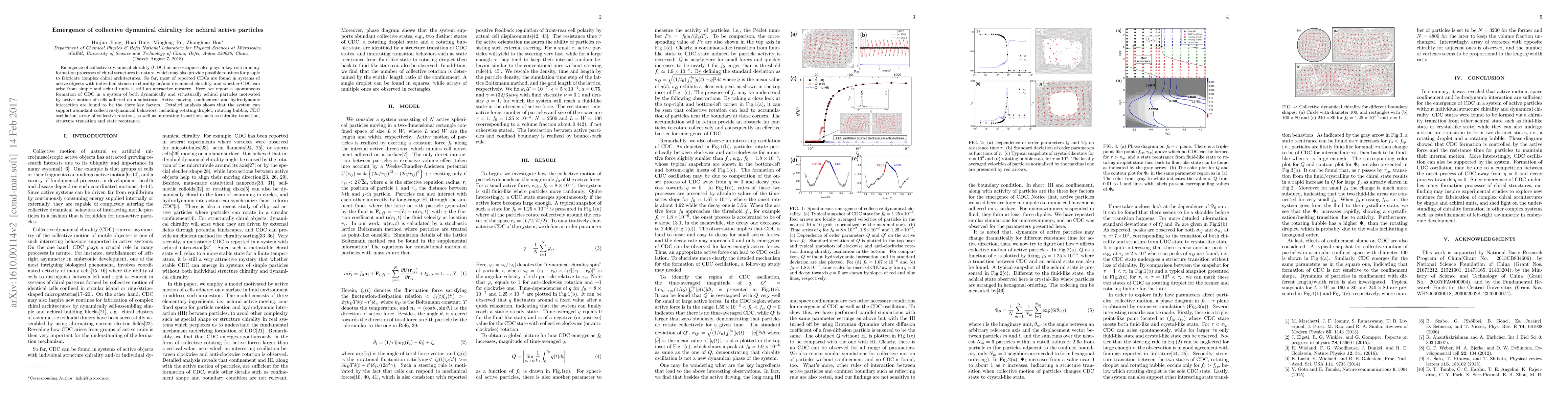 This paper investigates the spontaneous emergence of collective dynamical chirality (CDC) in a system of achiral active particles, revealing that active motion, confinement, and hydrodynamic interactions are key factors. The study demonstrates various collective dynamical behaviors and transitions, highlighting the potential for fabricating complex chiral architectures.