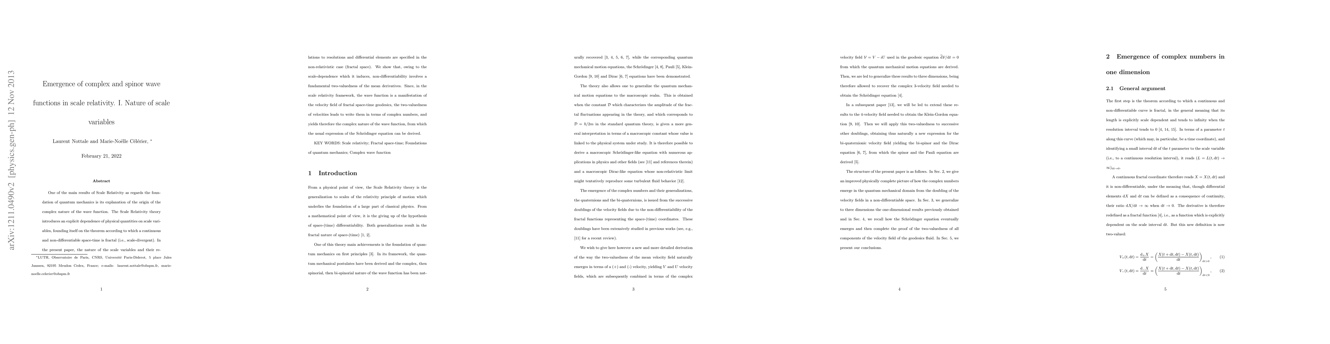 One of the main results of Scale Relativity as regards the foundation of quantum mechanics is its explanation of the origin of the complex nature of the wave function. The Scale Relativity theory introduces an explicit dependence of physical quantities on scale variables, founding itself on the theorem according to which a continuous and non-differentiable space-time is fractal (i.e., scale-divergent). In the present paper, the nature of the scale variables and their relations to resolutions and differential elements are specified in the non-relativistic case (fractal space). We show that, owing to the scale-dependence which it induces, non-differentiability involves a fundamental two-valuedness of the mean derivatives. Since, in the scale relativity framework, the wave function is a manifestation of the velocity field of fractal space-time geodesics, the two-valuedness of velocities leads to write them in terms of complex numbers, and yields therefore the complex nature of the wave function, from which the usual expression of the Schr\"odinger equation can be derived.
