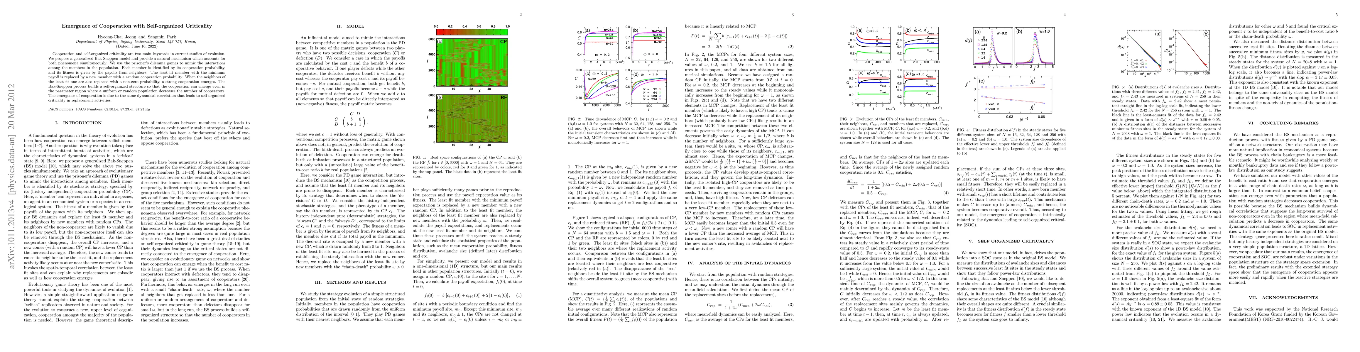 This paper proposes a generalized Bak-Sneppen model that demonstrates how cooperation can emerge through self-organized criticality, using prisoner's dilemma games to simulate interactions among population members. The model shows that cooperation increases when the replacement process fosters dynamical correlations similar to those that drive self-organized criticality.