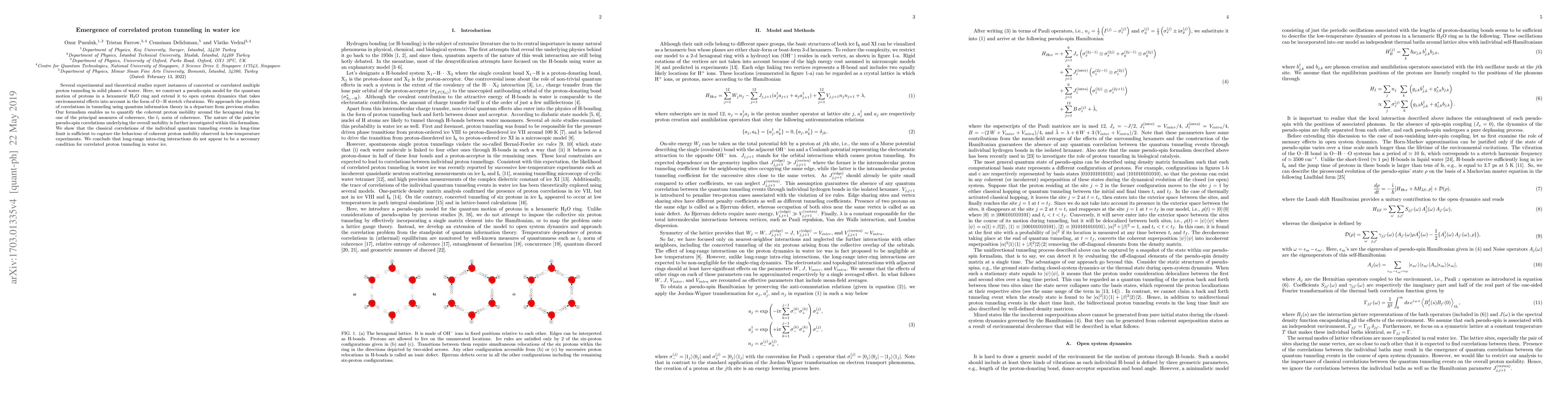 Several experimental and theoretical studies report instances of concerted or correlated multiple proton tunneling in solid phases of water. Here, we construct a pseudo-spin model for the quantum motion of protons in a hexameric H$_2$O ring and extend it to open system dynamics that takes environmental effects into account in the form of O$-$H stretch vibrations. We approach the problem of correlations in tunneling using quantum information theory in a departure from previous studies. Our formalism enables us to quantify the coherent proton mobility around the hexagonal ring by one of the principal measures of coherence, the $l_1$ norm of coherence. The nature of the pairwise pseudo-spin correlations underlying the overall mobility is further investigated within this formalism. We show that the classical correlations of the individual quantum tunneling events in long-time limit is sufficient to capture the behaviour of coherent proton mobility observed in low-temperature experiments. We conclude that long-range intra-ring interactions do not appear to be a necessary condition for correlated proton tunneling in water ice.