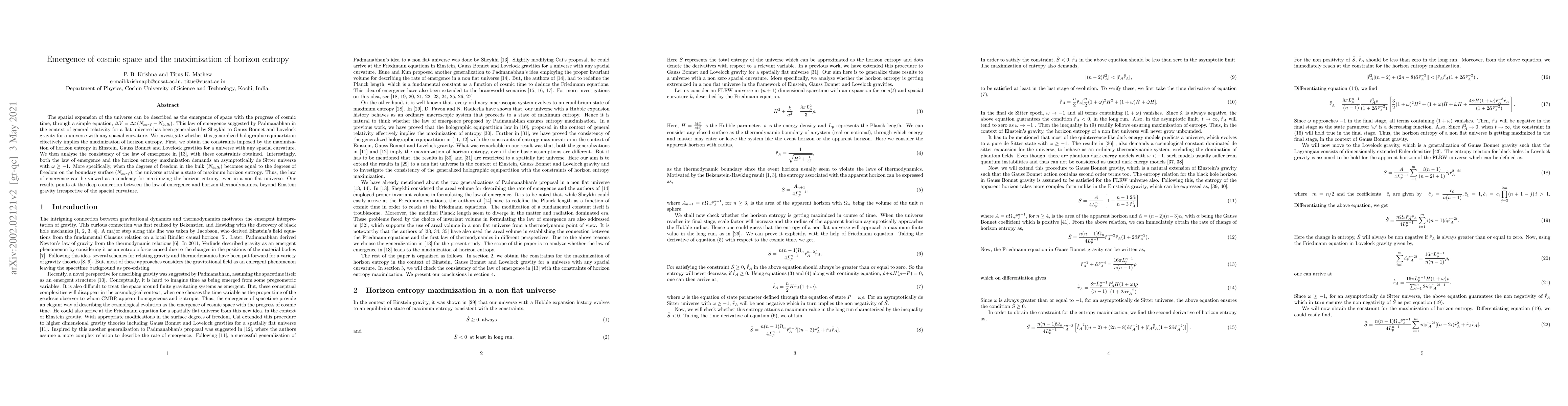 The spatial expansion of the universe can be described as the emergence of space with the progress of cosmic time, through a simple equation, $\Delta V = \Delta t\left(N_{surf}- N_{bulk}\right)$. This law of emergence suggested by Padmanabhan in the context of general relativity for a flat universe has been generalized by Sheykhi to Gauss Bonnet and Lovelock gravity for a universe with any spacial curvature. We investigate whether this generalized holographic equipartition effectively implies the maximization of horizon entropy. First, we obtain the constraints imposed by the maximization of horizon entropy in Einstein, Gauss Bonnet and Lovelock gravities for a universe with any spacial curvature. We then analyze the consistency of the law of emergence in \cite{Sheykhi}, with these constraints obtained. Interestingly, both the law of emergence and the horizon entropy maximization demands an asymptotically de Sitter universe with $\omega \geq -1$. More specifically, when the degrees of freedom in the bulk $( N_{bulk})$ becomes equal to the degrees of freedom on the boundary surface $(N_{surf}),$ the universe attains a state of maximum horizon entropy. Thus, the law of emergence can be viewed as a tendency for maximizing the horizon entropy, even in a non flat universe. Our results points at the deep connection between the law of emergence and horizon thermodynamics, beyond Einstein gravity irrespective of the spacial curvature.