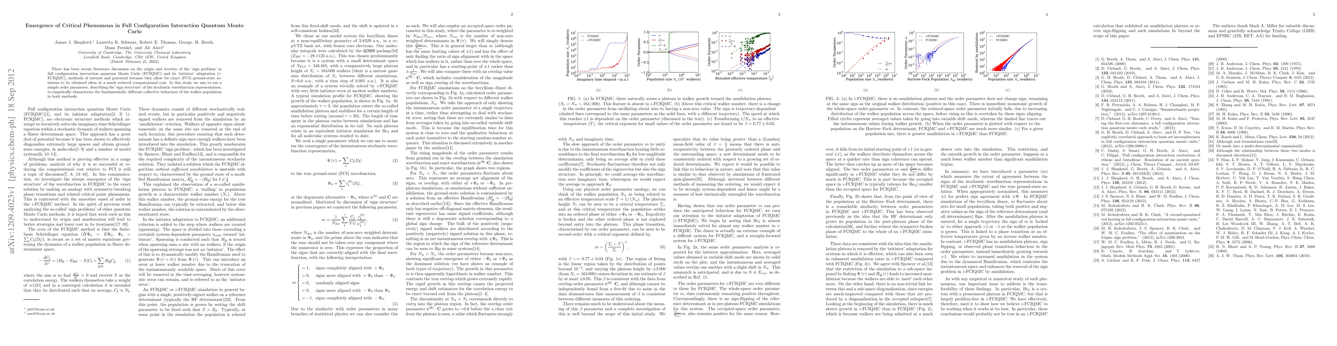 This paper investigates the emergence of critical phenomena in full configuration interaction quantum Monte Carlo (FCIQMC) and its initiator adaptation (i-FCIQMC) by using an order parameter to characterize the behavior of the walker population, aiming to understand the sign problem's impact on these methods.