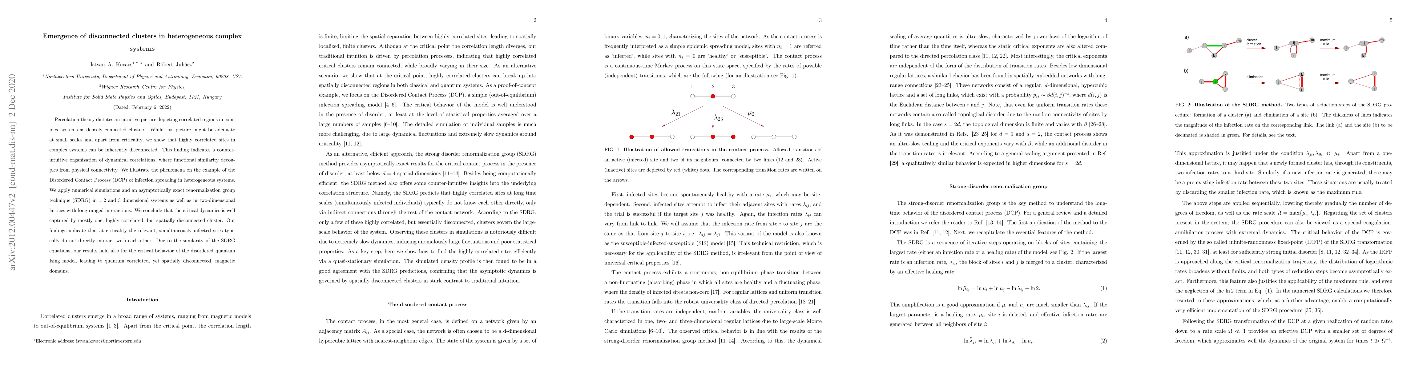 This paper reveals that in heterogeneous complex systems, highly correlated regions can be disconnected, contrary to percolation theory's typical depiction. The study uses the Disordered Contact Process and SDRG techniques to show that critical dynamics often involve a single, highly correlated but spatially separated cluster, applicable to both classical and quantum systems.