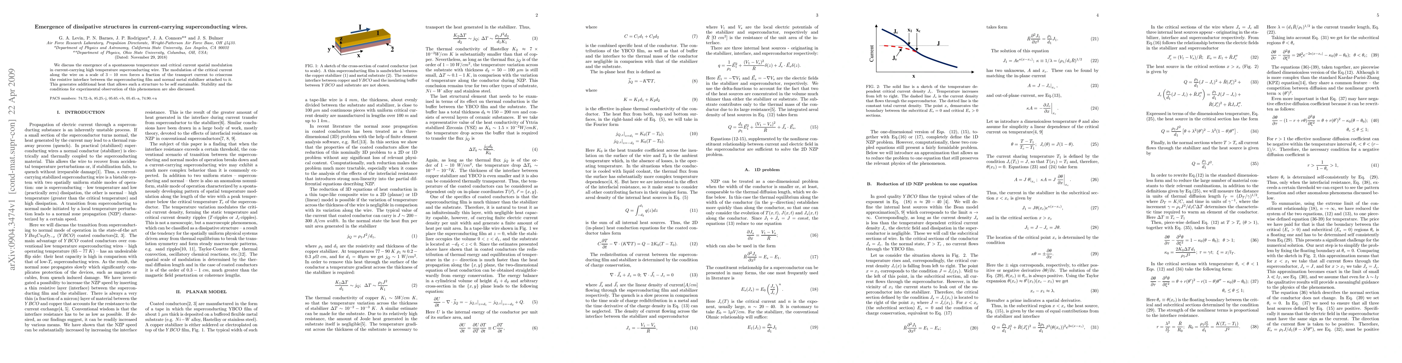We discuss the emergence of a spontaneous temperature and critical current spatial modulation in current-carrying high temperature superconducting wire. The modulation of the critical current along the wire on a scale of 3 - 10 mm forces a fraction of the transport current to crisscross the resistive interface between the superconducting film and normal metal stabilizer attached to it. This generates additional heat that allows such a structure to be self sustainable. Stability and the conditions for experimental observation of this phenomenon are also discussed.