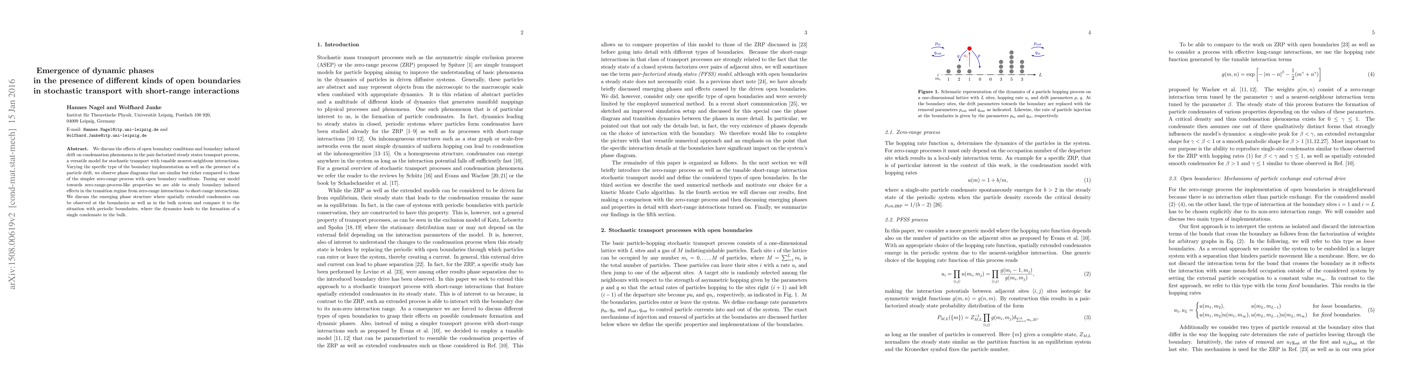 Researchers studied how open boundaries affect condensation in a model for stochastic transport with variable interactions, finding richer phase diagrams than those with periodic boundaries.
