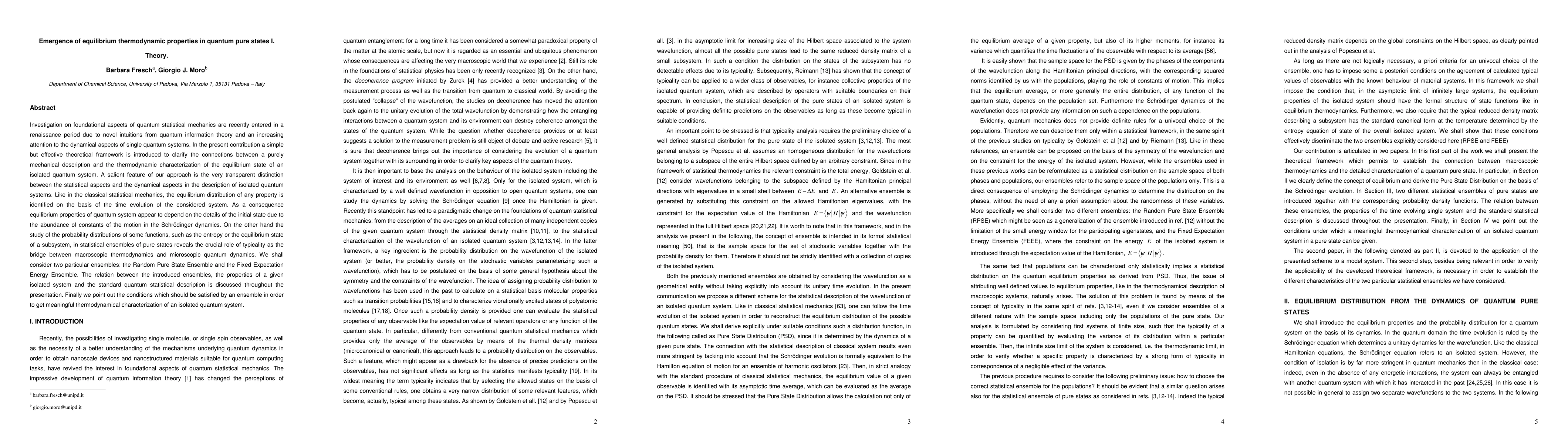 This paper introduces a theoretical framework to describe equilibrium thermodynamic properties in isolated quantum systems, highlighting the role of typicality and constants of motion.