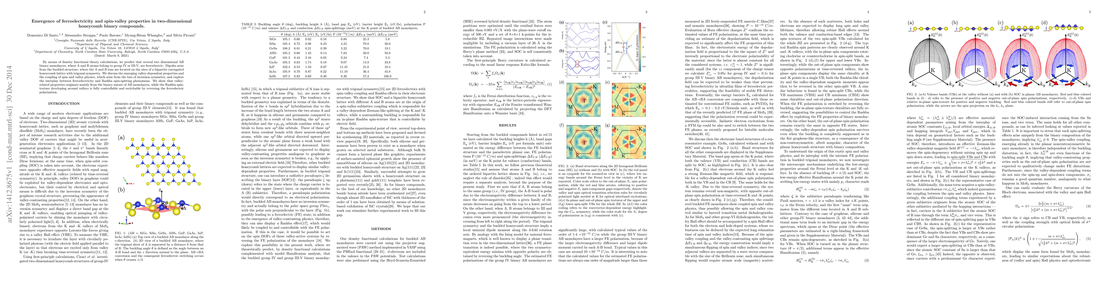 Summary: Using density functional theory, researchers predict ferroelectricity in 2D AB binary monolayers due to their buckled structure. They explore the coupling of spin and valley physics, demonstrating that valley-related properties and Rashba spin-splitting phenomena can be controlled by reversing ferroelectric polarization.