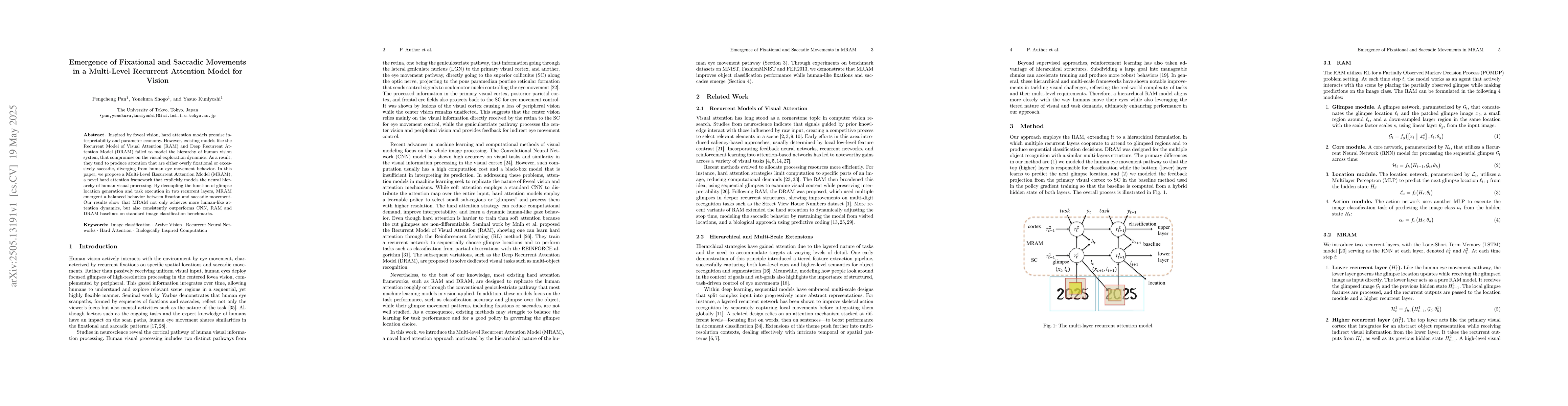 The paper introduces the Multi-Level Recurrent Attention Model (MRAM), a novel hard attention framework that mimics human visual processing hierarchy. MRAM balances fixational and saccadic attention dynamics, outperforming existing models like CNN, RAM, and DRAM in image classification tasks.