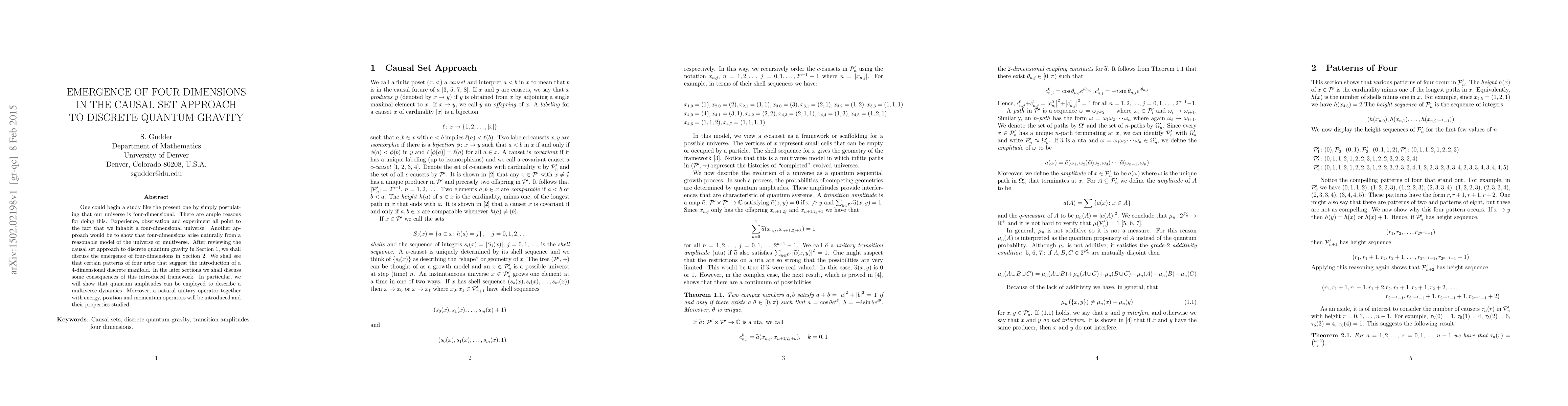 This research paper explores how four dimensions emerge in a discrete quantum gravity framework, suggesting a multiverse dynamics and introducing key operators like energy, position, and momentum.