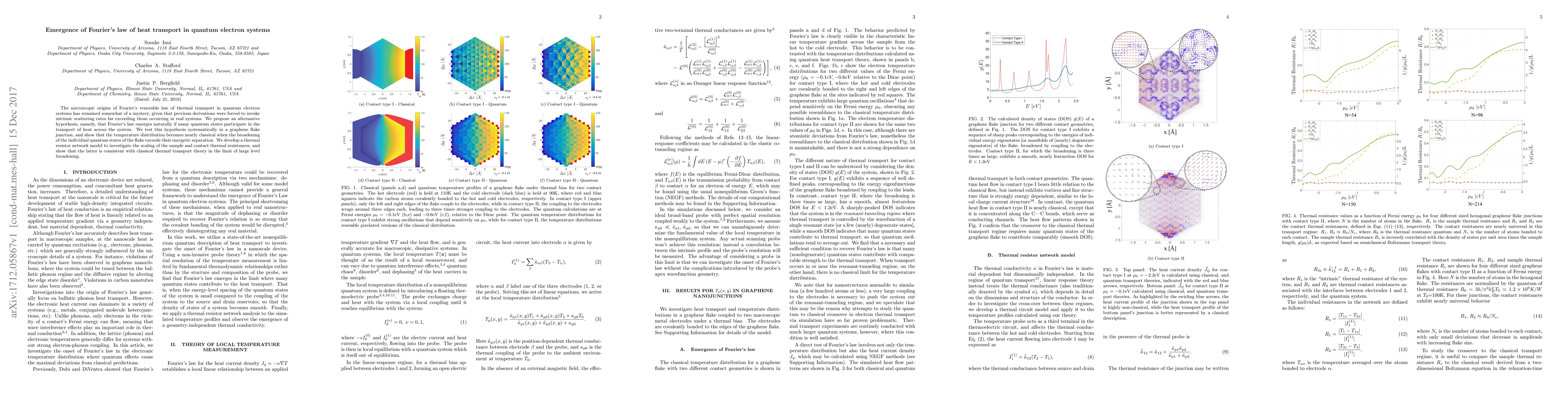 This paper explores the microscopic origins of Fourier's law in quantum electron systems, proposing that many quantum states participating in heat transport can naturally lead to classical-like thermal behavior. Experimental results in graphene flake junctions support this hypothesis, showing that classical temperature distribution emerges when quantum state broadening exceeds energetic separation.