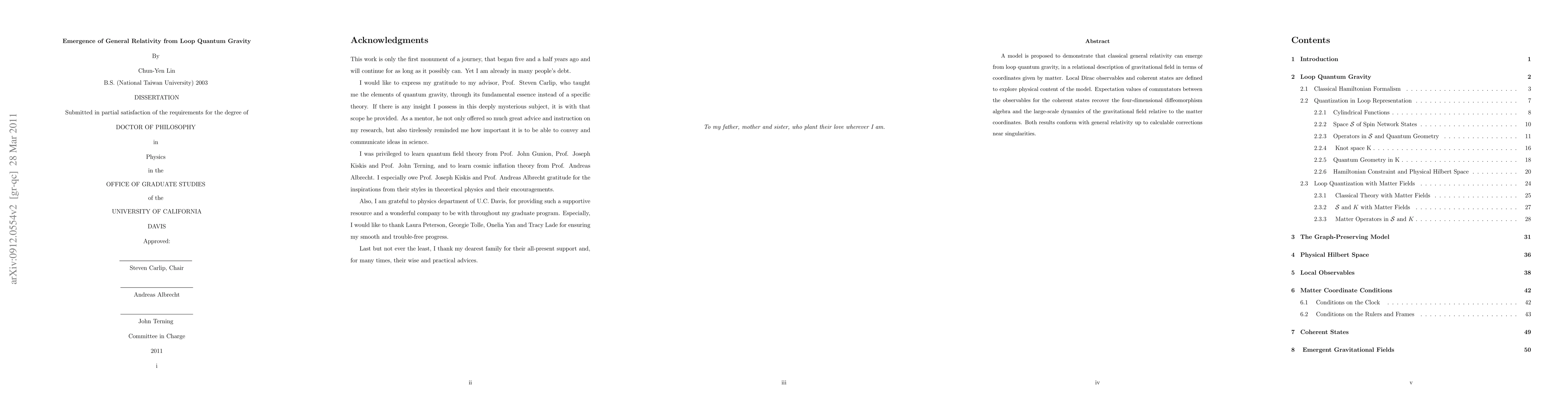 This paper proposes a model showing how classical general relativity can emerge from loop quantum gravity through a relational description of the gravitational field. It uses local Dirac observables and coherent states to demonstrate that the four-dimensional diffeomorphism algebra and gravitational dynamics align with general relativity, with corrections near singularities.