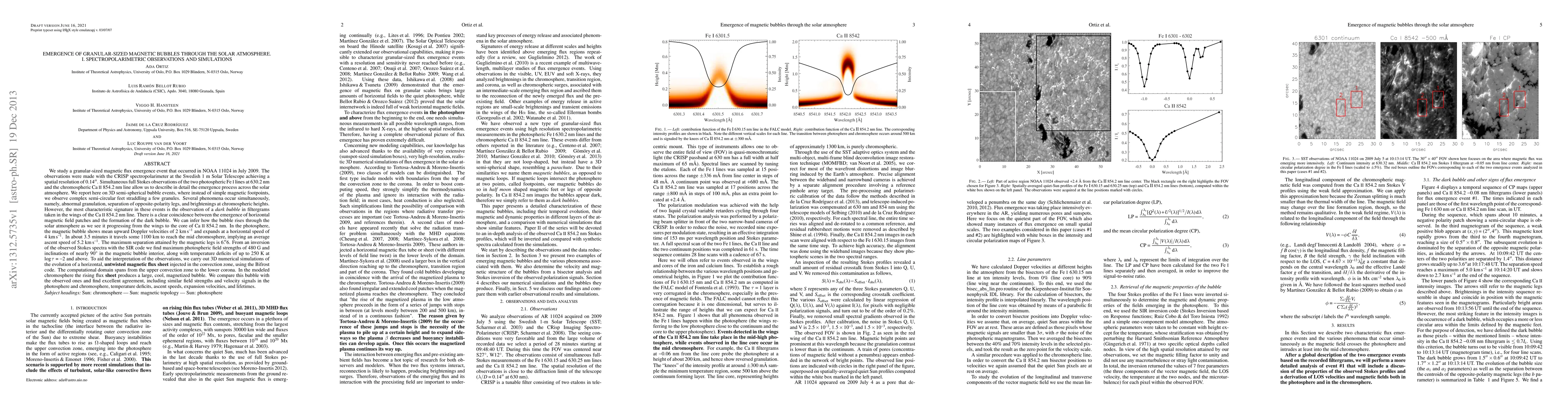 This paper investigates granular-sized magnetic flux emergence in the solar atmosphere, observing semi-spherical bubbles rising from the photosphere to the chromosphere using CRISP spectropolarimetry. Numerical simulations using the Bifrost code match the observed bubble characteristics, including velocities, field strengths, and temperature deficits.