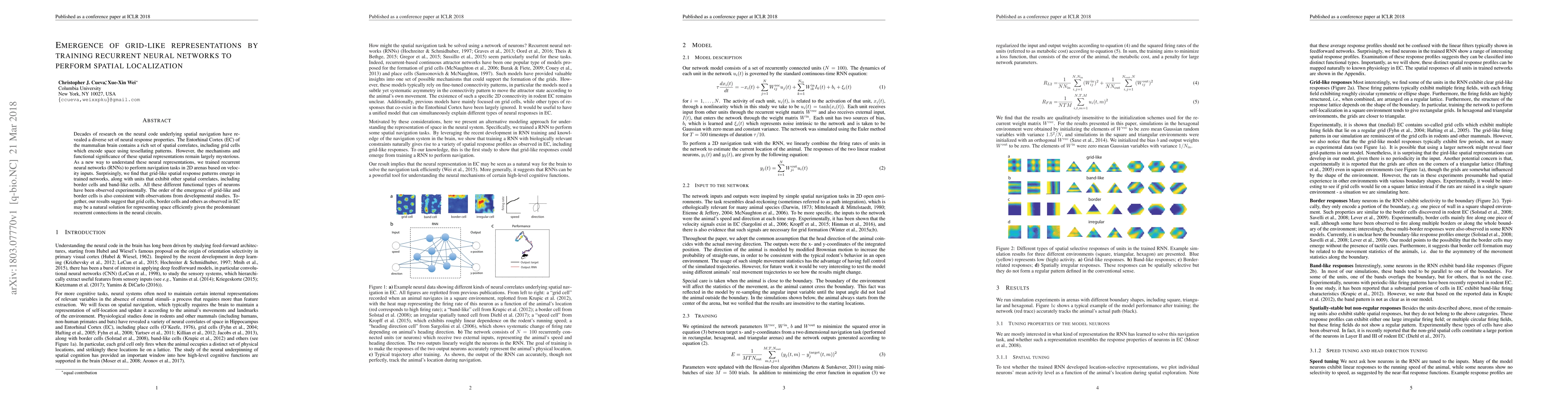 This research trains recurrent neural networks to simulate spatial navigation, revealing emergent grid-like spatial response patterns similar to those found in the Entorhinal Cortex of mammals. The study suggests that these spatial representations may naturally arise due to recurrent connections in neural circuits.