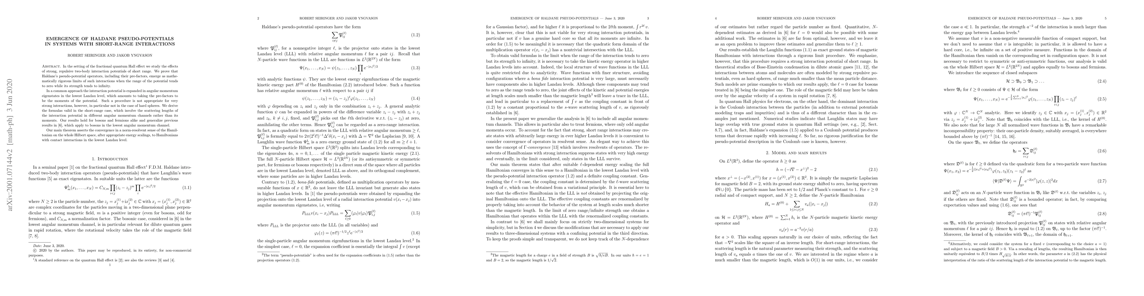 Research proves Haldane pseudo-potentials emerge as limits of strong, short-range interactions in systems like the fractional quantum Hall effect, applicable to both bosons and fermions.