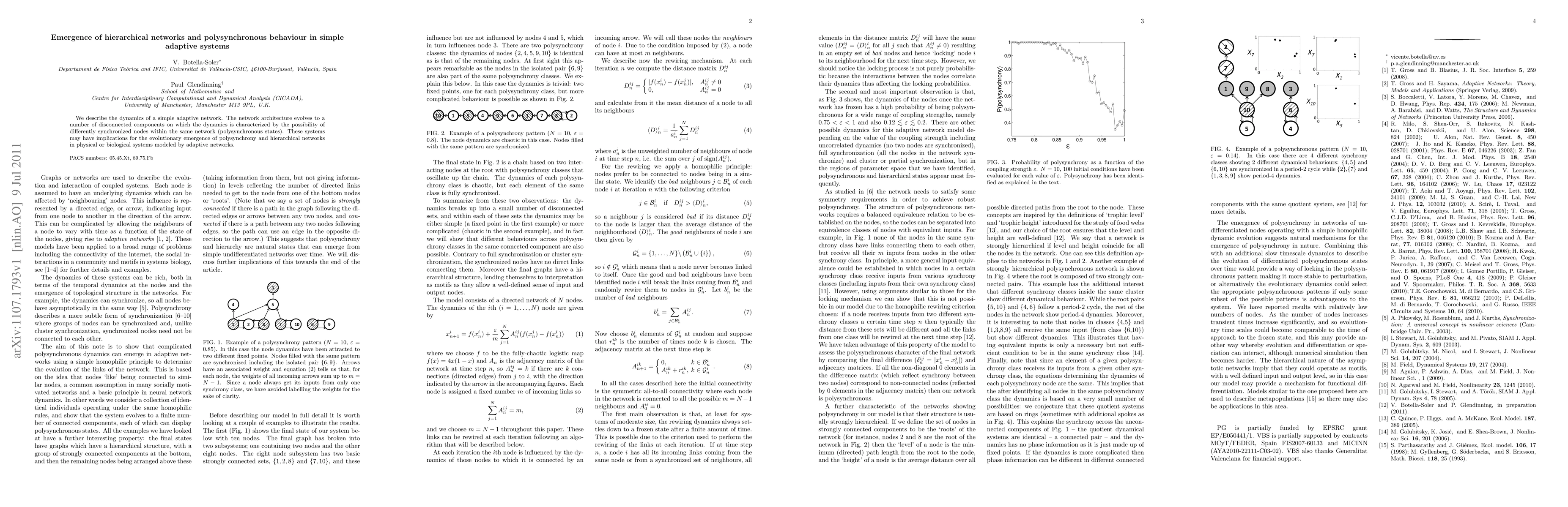 We describe the dynamics of a simple adaptive network. The network architecture evolves to a number of disconnected components on which the dynamics is characterized by the possibility of differently synchronized nodes within the same network (polysynchronous states). These systems may have implications for the evolutionary emergence of polysynchrony and hierarchical networks in physical or biological systems modeled by adaptive networks.