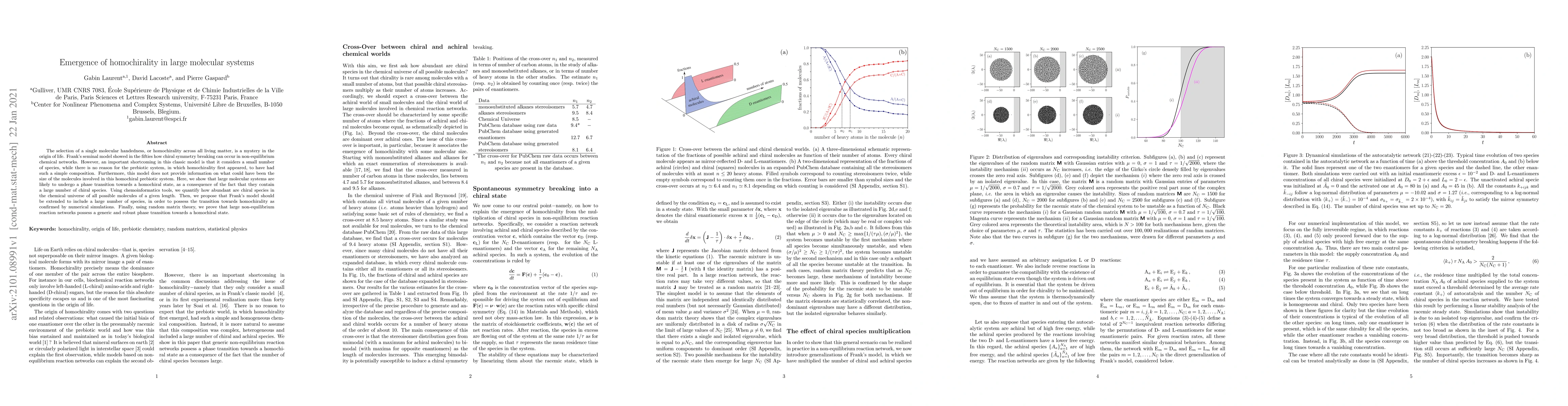 This paper extends Frank's model on chiral symmetry breaking to large molecular systems, demonstrating through chemoinformatics that these systems are likely to undergo a phase transition towards homochirality due to the abundance of chiral species. Numerical simulations and random matrix theory confirm the robustness of this transition in complex prebiotic networks.