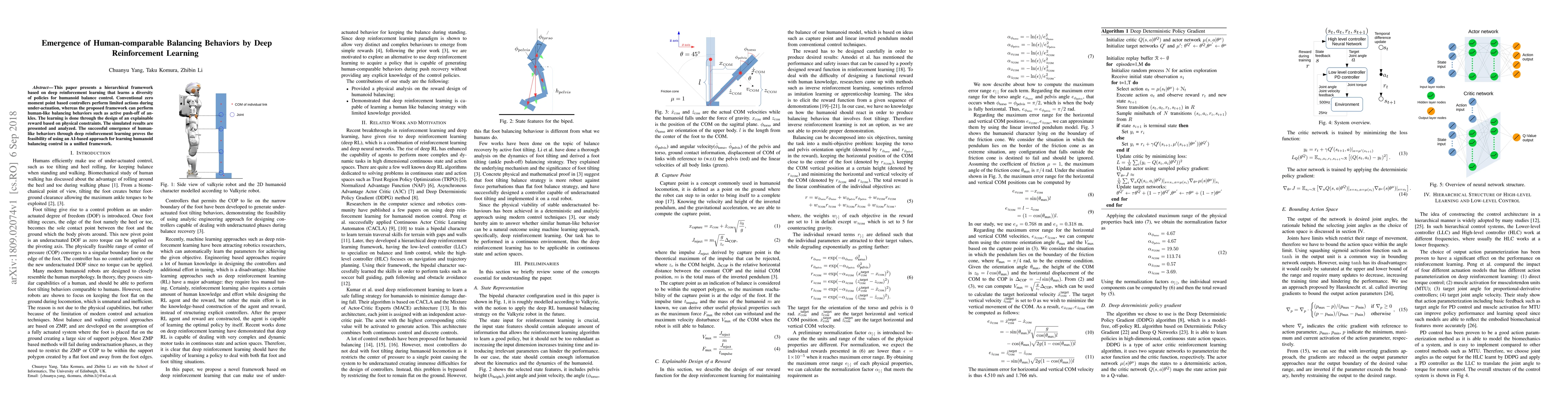 The paper introduces a hierarchical deep reinforcement learning framework with an explainable reward function, enabling the learning of human-like balancing behaviors in humanoid robots.