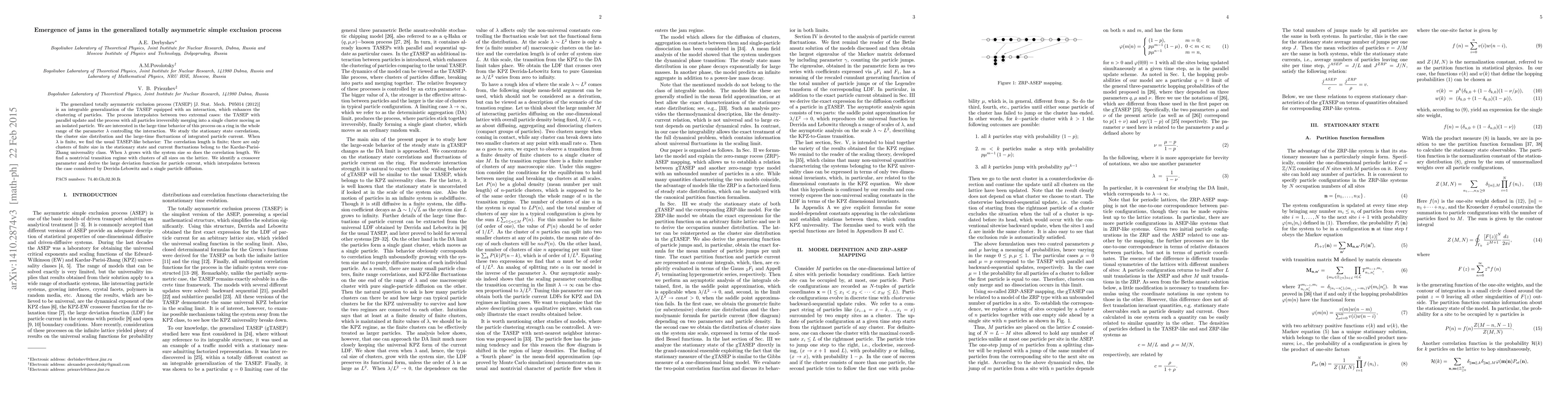 This paper investigates the dynamics of the generalized totally asymmetric simple exclusion process, focusing on the emergence of jams and cluster formation under varying interaction parameters. It reveals a transition from finite correlation length and Kardar-Parisi-Zhang fluctuations to a regime where the correlation length scales with system size, identifying a crossover parameter and deriving the large deviation function for particle current.
