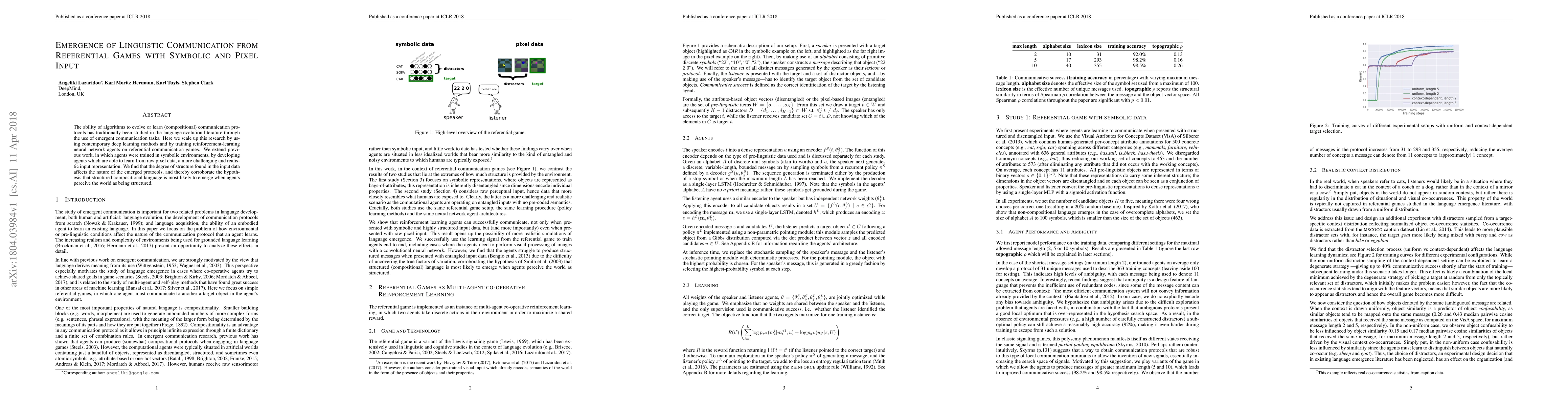 This paper explores how deep learning algorithms can evolve communication protocols through reinforcement learning in referential games. It finds that agents trained on raw pixel data, compared to symbolic inputs, develop more structured communication systems, supporting the idea that structured input fosters the emergence of compositional language.