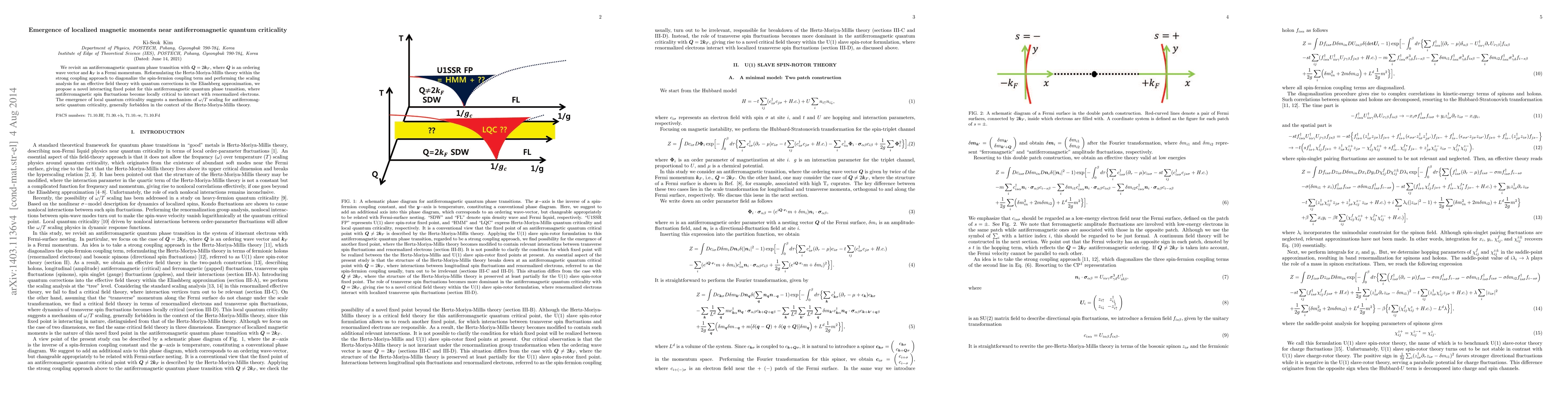 This paper proposes a novel interacting fixed point for an antiferromagnetic quantum phase transition, revealing localized magnetic moments near criticality. It employs a strong coupling approach and scaling analysis to suggest a new mechanism of $\omega/T$ scaling, differing from traditional Hertz-Moriya-Millis theory.
