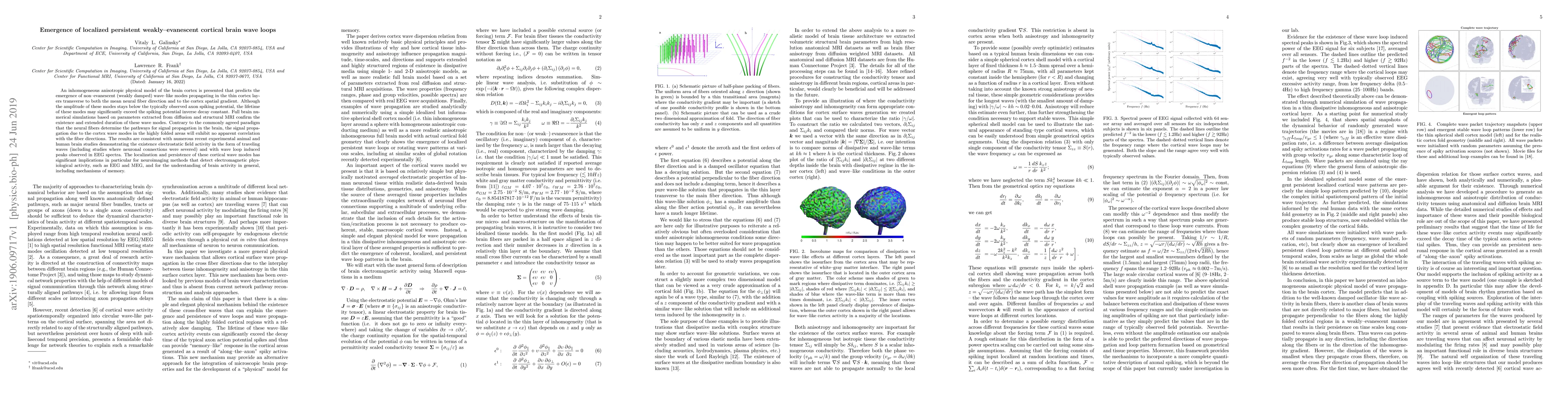 An inhomogeneous anisotropic physical model of the brain cortex is presented that predicts the emergence of non--evanescent (weakly damped) wave--like modes propagating in the thin cortex layers transverse to both the mean neural fiber direction and to the cortex spatial gradient. Although the amplitude of these modes stays below the typically observed axon spiking potential, the lifetime of these modes may significantly exceed the spiking potential inverse decay constant. Full brain numerical simulations based on parameters extracted from diffusion and structural MRI confirm the existence and extended duration of these wave modes. Contrary to the commonly agreed paradigm that the neural fibers determine the pathways for signal propagation in the brain, the signal propagation due to the cortex wave modes in the highly folded areas will exhibit no apparent correlation with the fiber directions. The results are consistent with numerous recent experimental animal and human brain studies demonstrating the existence electrostatic field activity in the form of traveling waves (including studies where neuronal connections were severed) and with wave loop induced peaks observed in EEG spectra. The localization and persistence of these cortical wave modes has significant implications in particular for neuroimaging methods that detect electromagnetic physiological activity, such as EEG and MEG, and for the understanding of brain activity in general, including mechanisms of memory.