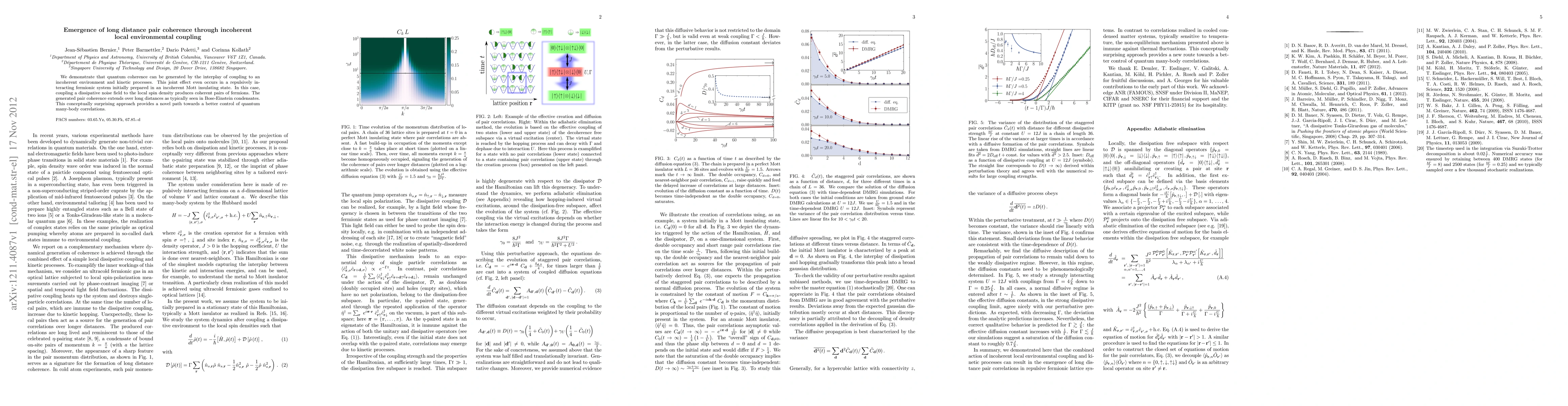 The research shows that quantum coherence can emerge from interaction with an incoherent environment and kinetic processes in a repulsively interacting fermionic system. By coupling a dissipative noise field to local spin density, coherent pairs of fermions are generated, extending over long distances, akin to Bose-Einstein condensates. This method offers a new way to control quantum many-body correlations.