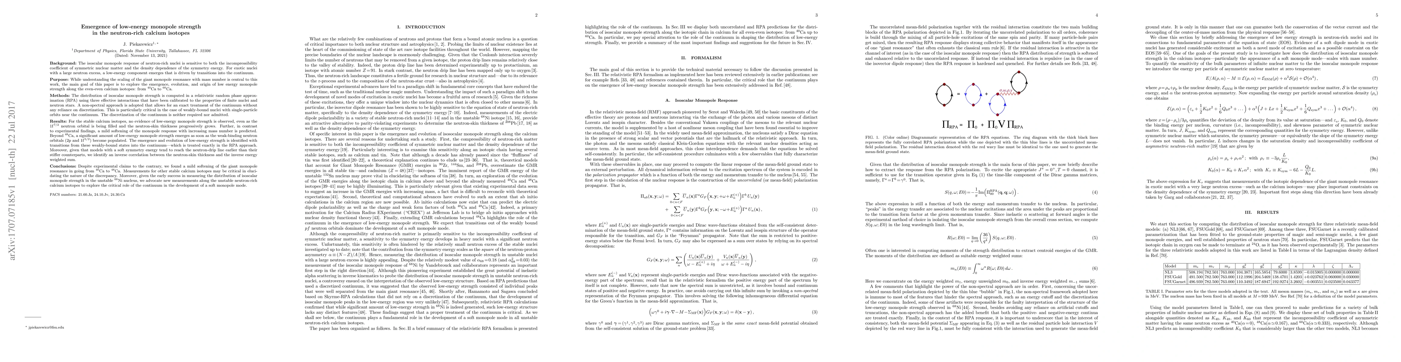 The isoscalar monopole response of neutron-rich nuclei is sensitive to both the incompressibility coefficient of symmetric nuclear matter and the density dependence of the symmetry energy. The main goal of this paper is to explore the emergence, evolution, and origin of low energy monopole strength along the even-even calcium isotopes: from 40Ca to 60Ca. The distribution of isoscalar monopole strength is computed in a relativistic random phase approximation (RPA) using three effective interactions that have been calibrated to the properties of finite nuclei and neutron stars. A non-spectral approach is adopted that allows for an exact treatment of the continuum without any reliance on discretization. For the stable calcium isotopes, no evidence of low-energy monopole strength is observed, even as the 1f7/2 neutron orbital is being filled and the neutron-skin thickness progressively grows. Further, in contrast to experimental findings, a mild softening of the monopole response with increasing mass number is predicted. Beyond 48Ca, a significant amount of low-energy monopole strength emerges as soon as the weak-binding neutron orbitals (2p and 1f5/2) become populated. The emergence and evolution of low-energy strength is identified with transitions from these weakly-bound states into the continuum. Moreover, given that models with a soft symmetry energy tend to reach the neutron-drip line earlier than their stiffer counterparts, we identify an inverse correlation between the neutron-skin thickness and the inverse energy weighted sum.