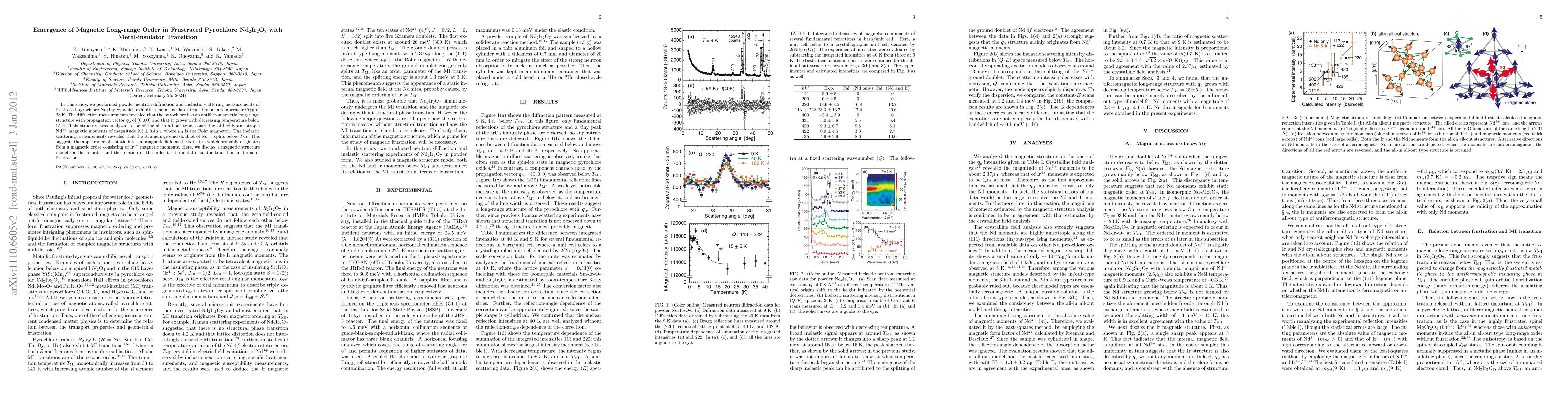 Researchers studied Nd$_2$Ir$_2$O$_7$, a material that undergoes a metal-insulator transition at 33K, revealing an antiferromagnetic structure with magnetic moments that split below the transition temperature.