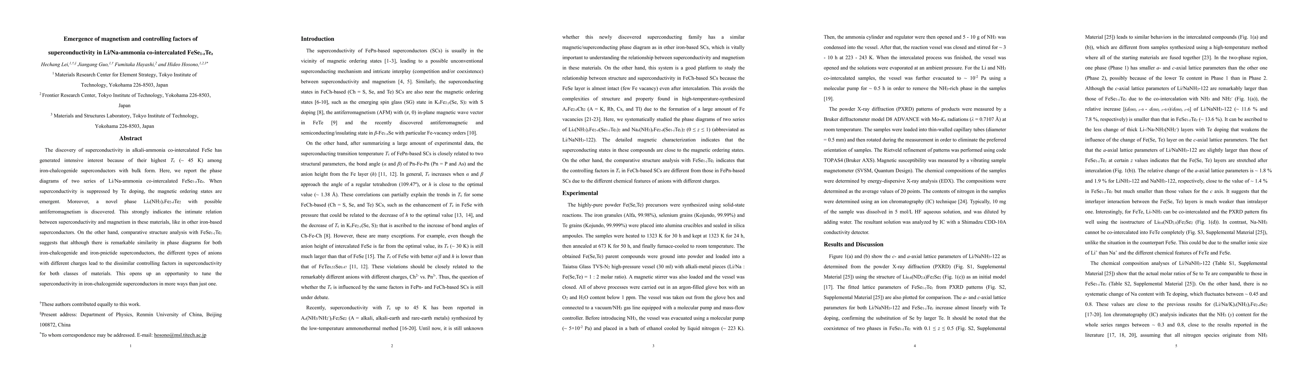 The discovery of superconductivity in alkali-ammonia co-intercalated FeSe has generated intensive interest because of their highest Tc (~ 45 K) among iron-chalcogenide superconductors with bulk form. Here, we report the phase diagrams of two series of Li/Na-ammonia co-intercalated FeSe1-zTez. When superconductivity is suppressed by Te doping, the magnetic ordering states are emergent. Moreover, a novel phase Lix(NH3)yFe2-{\delta}Te2 with possible antiferromagnetism is discovered. This strongly indicates the intimate relation between superconductivity and magnetism in these materials, like in other iron-based superconductors. On the other hand, comparative structure analysis with FeSe1-zTez suggests that although there is remarkable similarity in phase diagrams for both iron-chalcogenide and iron-pnictide superconductors, the different types of anions with different charges lead to the dissimilar controlling factors in superconductivity for both classes of materials. This opens up an opportunity to tune the superconductivity in iron-chalcogenide superconductors in more ways than just one.