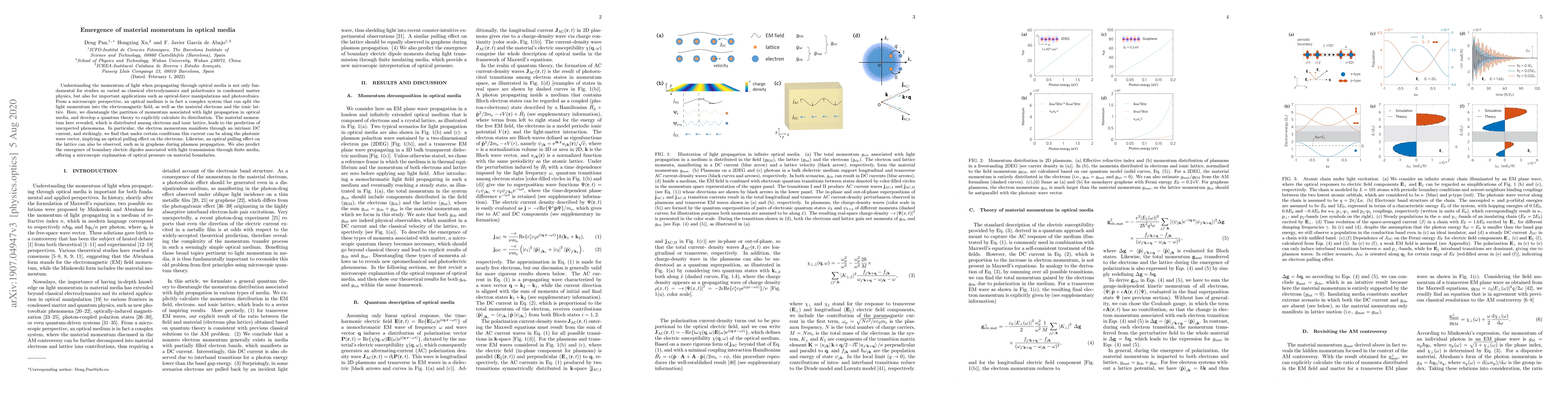 Understanding the momentum of light when propagating through optical media is not only fundamental for studies as varied as classical electrodynamics and polaritonics in condensed matter physics, but also for important applications such as optical-force manipulations and photovoltaics. From a microscopic perspective, an optical medium is in fact a complex system that can split the light momentum into the electromagnetic field, as well as the material electrons and the ionic lattice. Here, we disentangle the partition of momentum associated with light propagation in optical media, and develop a quantum theory to explicitly calculate its distribution. The material momentum here revealed, which is distributed among electrons and ionic lattice, leads to the prediction of unexpected phenomena. In particular, the electron momentum manifests through an intrinsic DC current, and strikingly, we find that under certain conditions this current can be along the photonic wave vector, implying an optical pulling effect on the electrons. Likewise, an optical pulling effect on the lattice can also be observed, such as in graphene during plasmon propagation. We also predict the emergence of boundary electric dipoles associated with light transmission through finite media, offering a microscopic explanation of optical pressure on material boundaries.