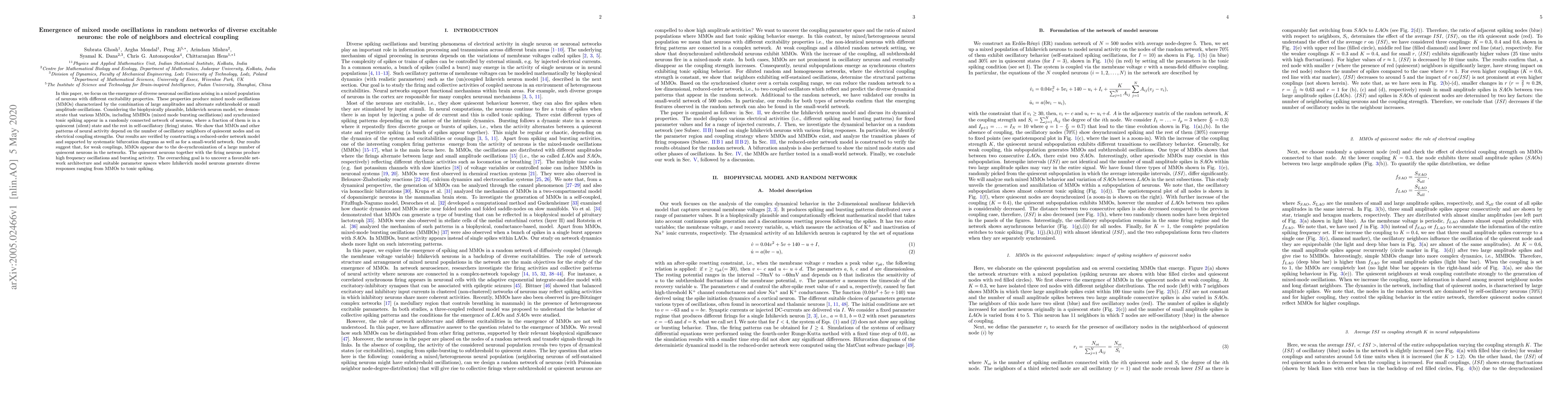 This paper investigates the emergence of mixed mode oscillations (MMOs) in random networks of neurons with varying excitability, showing that MMOs arise due to the interplay between quiescent and oscillatory neurons and the electrical coupling strength. The findings suggest that network architecture and coupling parameters can lead to diverse neural activity patterns, including MMOs and synchronized tonic spiking.